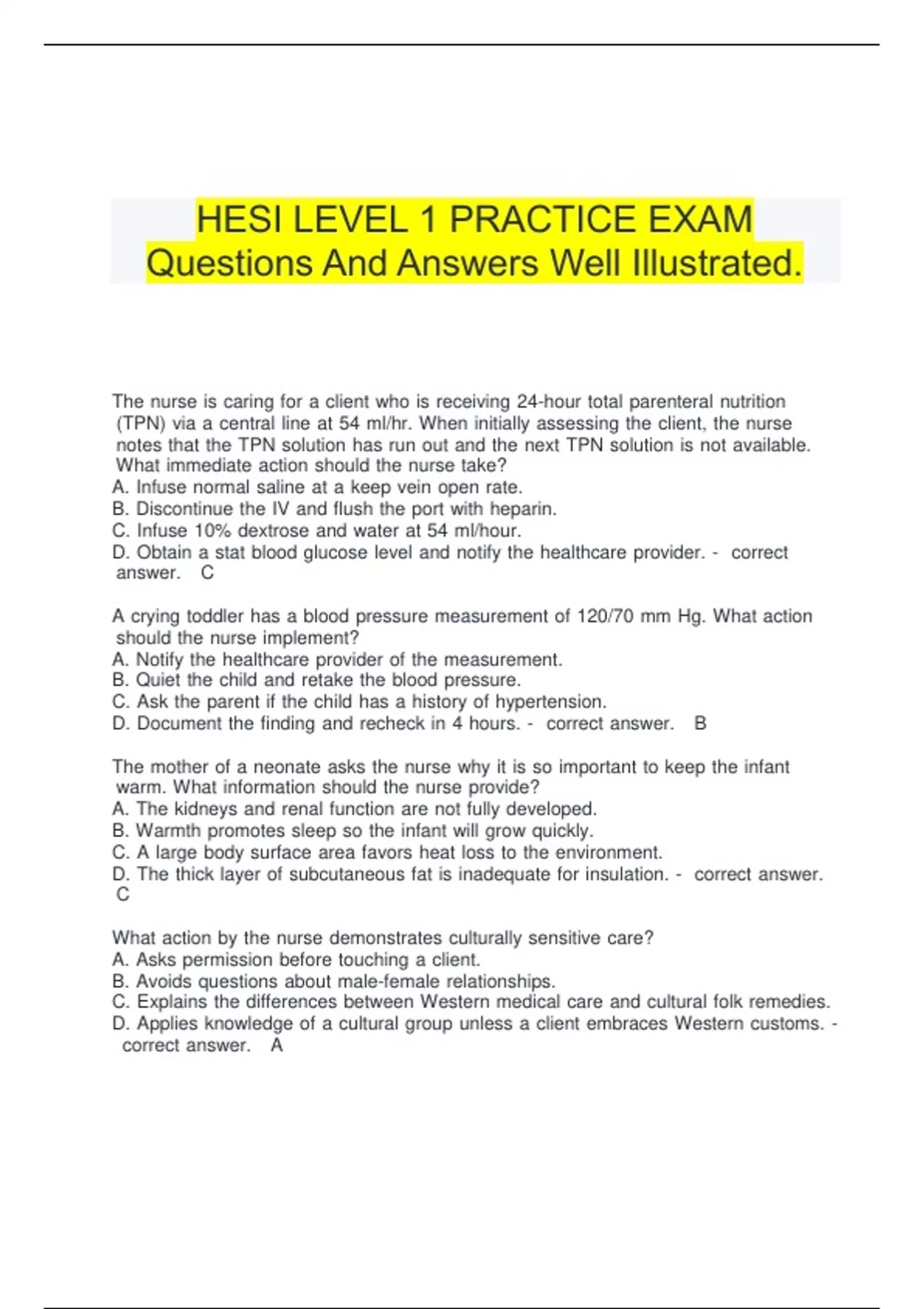 HESI LEVEL 1 PRACTICE EXAM Questions And Answers Well Illustrated.