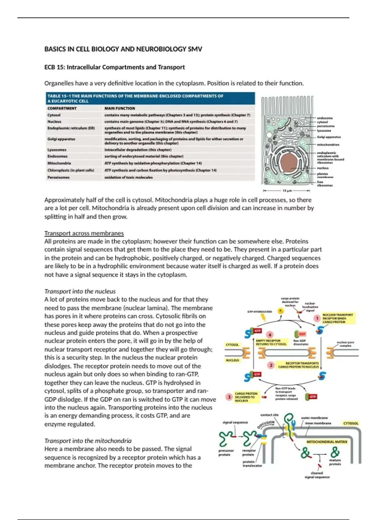 Summary cell biology part of From Molecule to Mind course in master Neurosciences VU