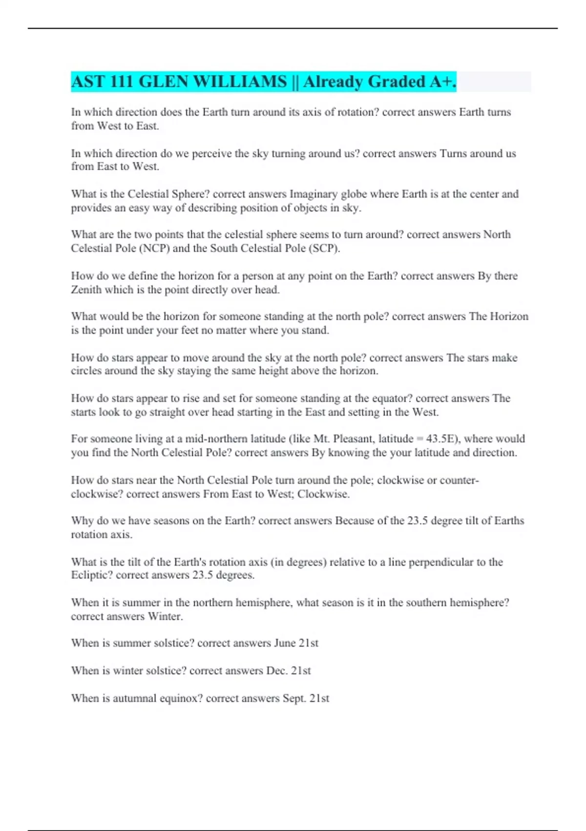AST 111 GLEN WILLIAMS || Already Graded A+.