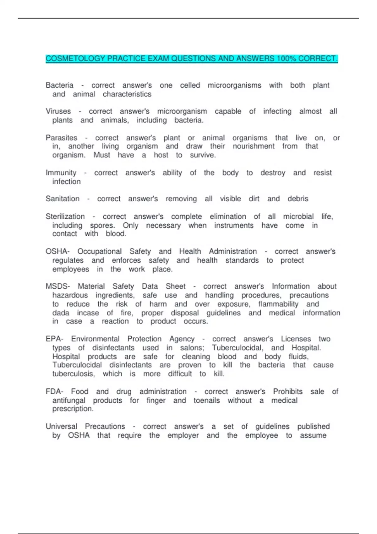 COSMETOLOGY PRACTICE EXAM QUESTIONS AND ANSWERS 100% CORRECT.