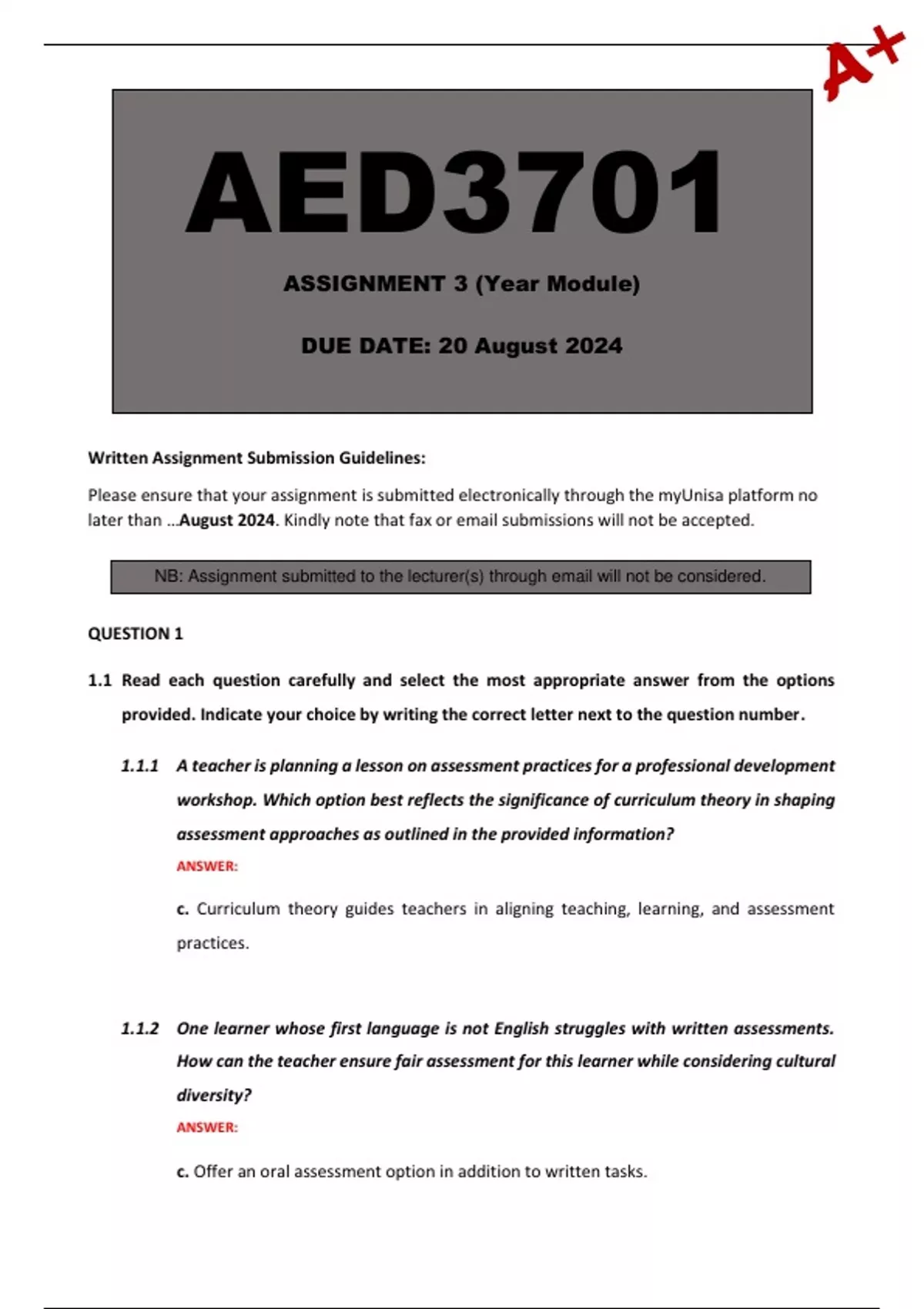 Please ensure that your assignment is submitted electronically through the myUnisa platform no
