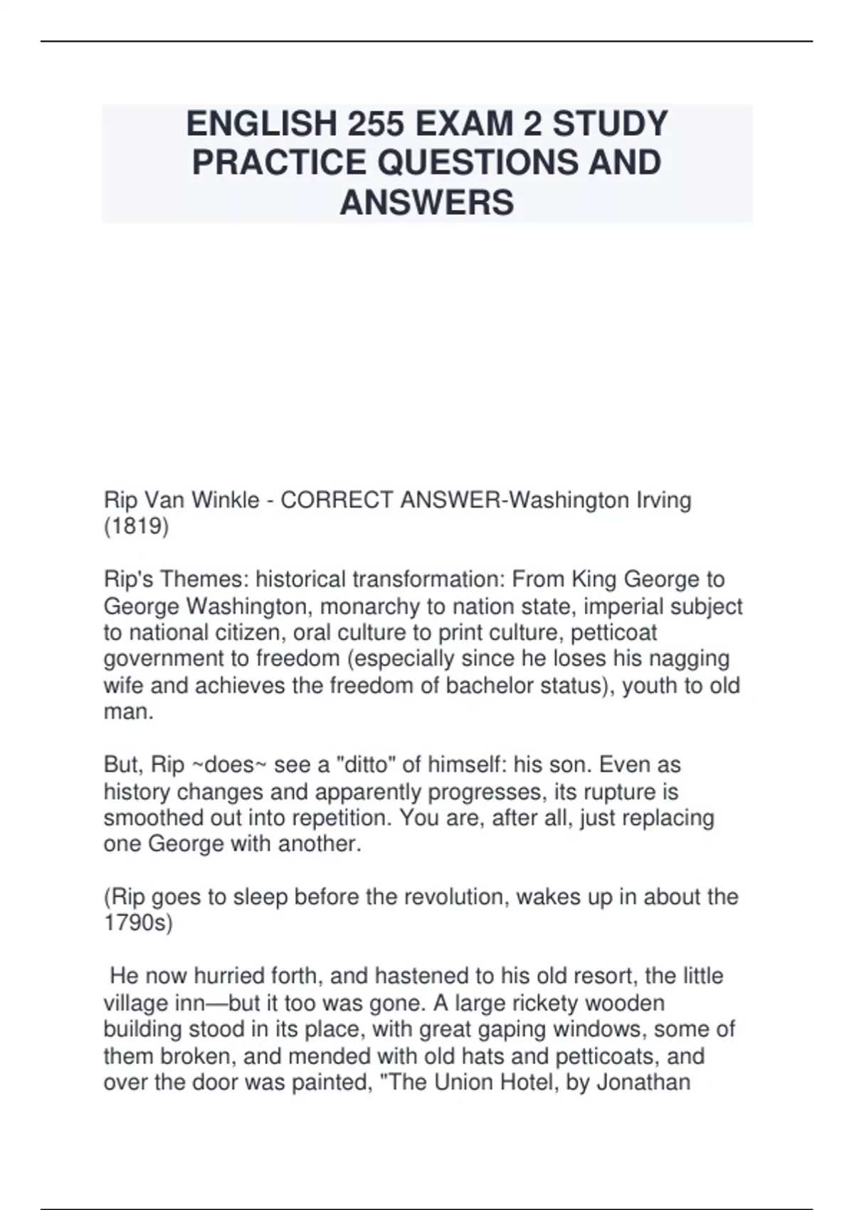 ENGLISH 255 EXAM 2 STUDY PRACTICE QUESTIONS AND ANSWERS
