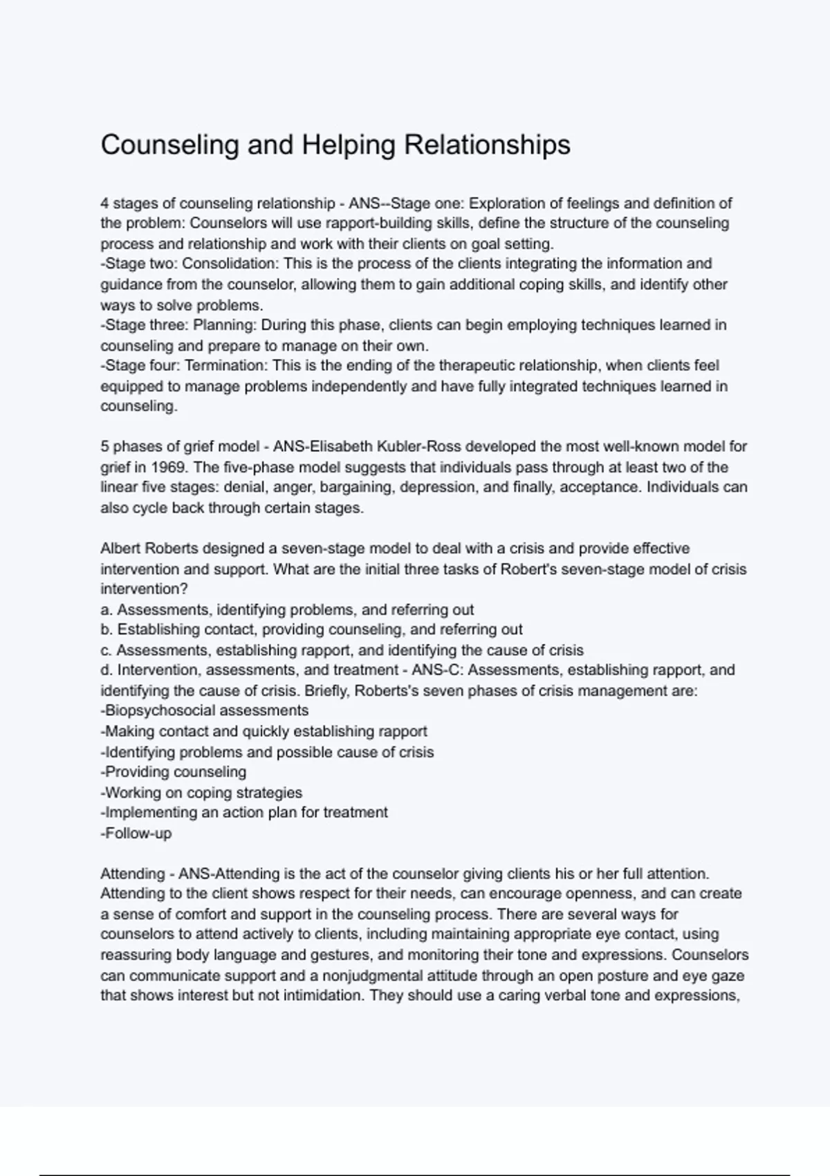 Counseling and Helping Relationships questions and answers
