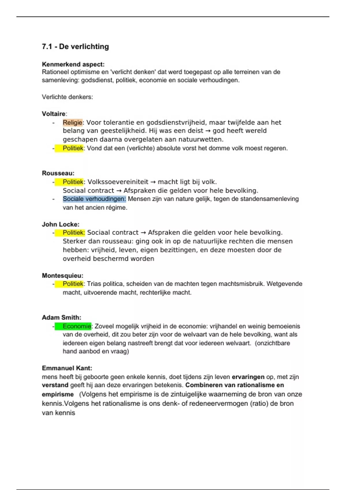 - Politiek: Volkssoevereiniteit → macht ligt bij volk.