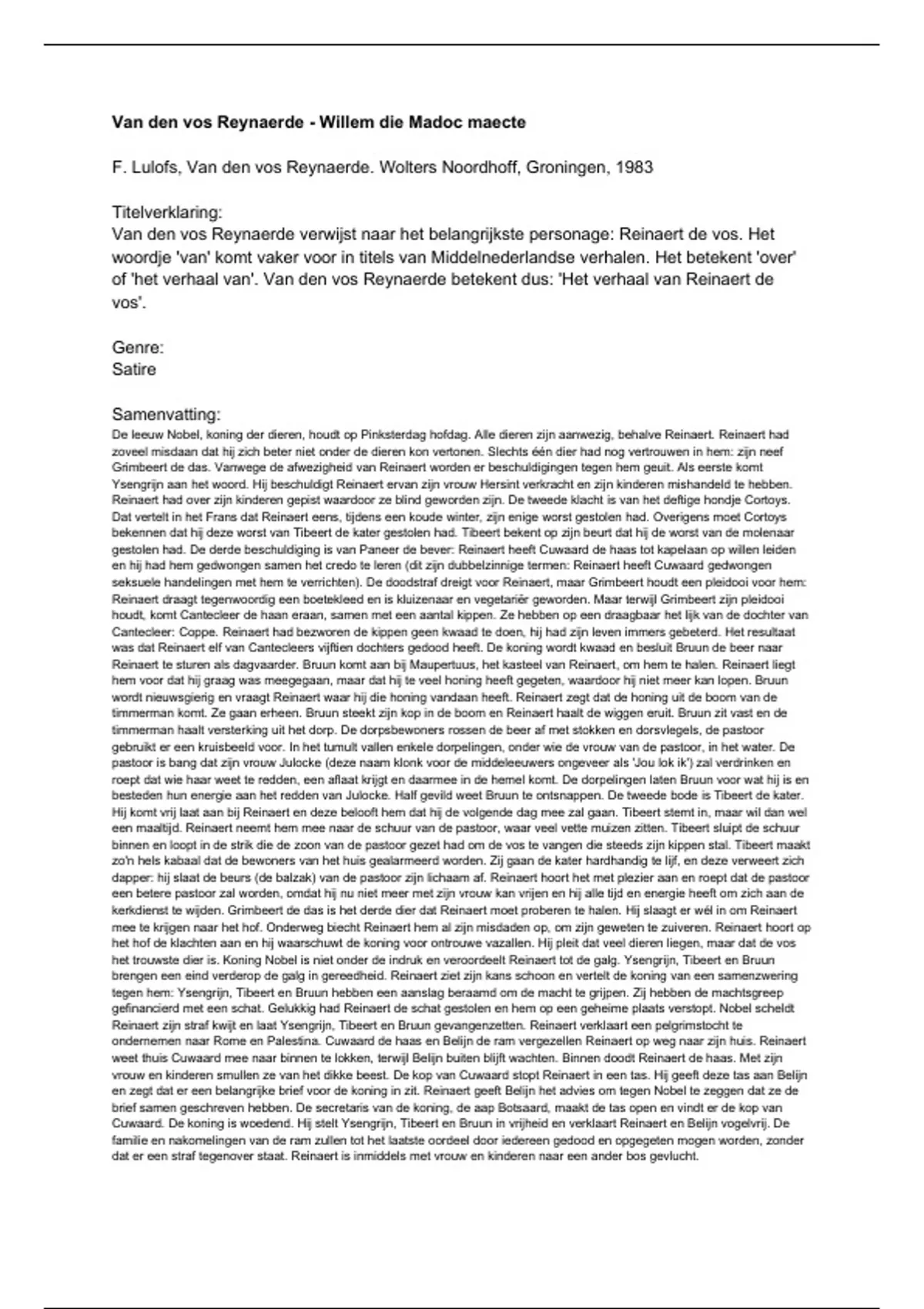 Dit is een kort verslagje over van den vos Reynaerde, het is 1 van de boeken die ik heb gelezen voor mijn mondeling / literatuurbespreking Nederlands, dit boekverslag bevat alles wat je moet weten over het boek. Zie mijn andere boekverslagen voor meer.