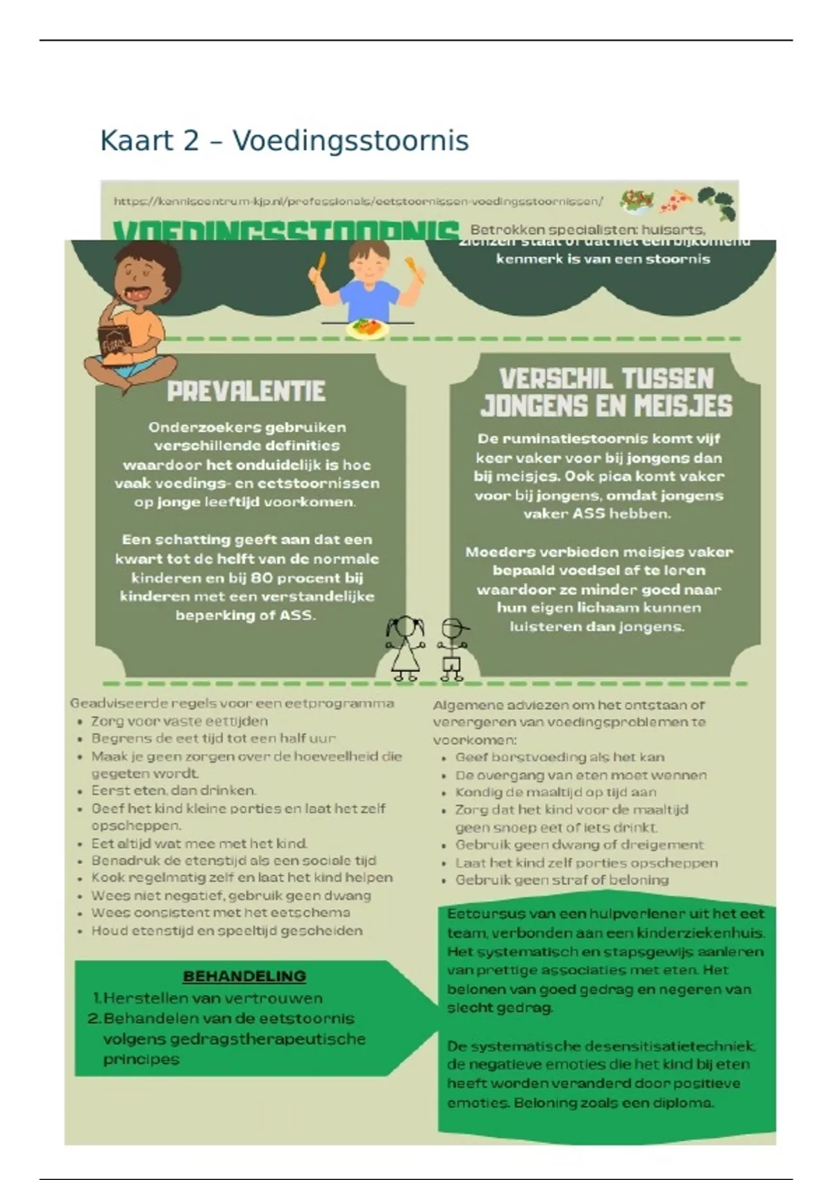 Infographic voedingsstoornis met informatie over de kernmerken, differentiaaldiagnose, comorbiditeit, prevalentie, handelingsadviezen, verschil in jongen en meisje, preventie en mogelijke behandeling.