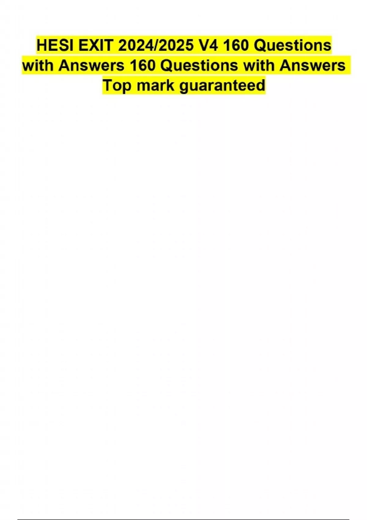 HESI EXIT 2024_2025 V4 160 Questions HESI EXIT 2024_2025 V4 160 Questions with Answers tat are 100% correct