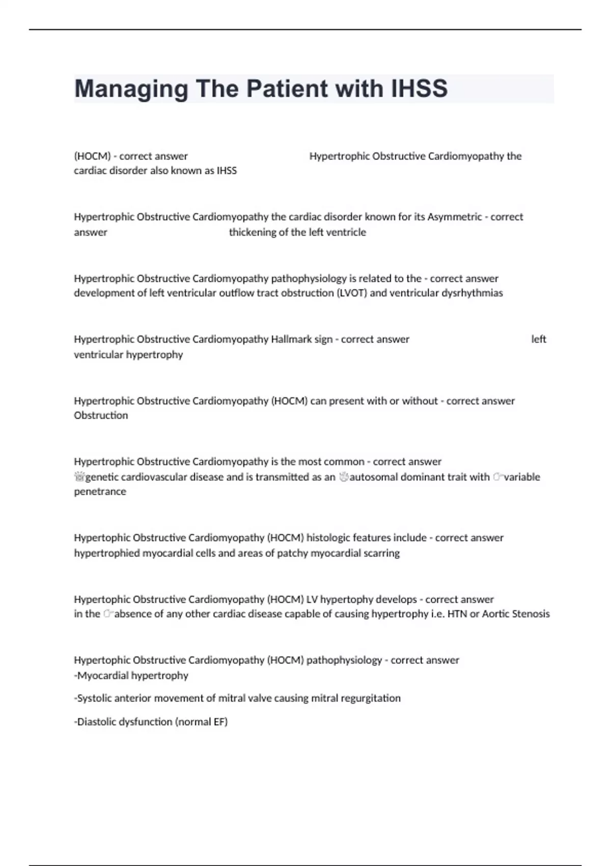 (HOCM) - correct answer Hypertrophic Obstructive Cardiomyopathy the
