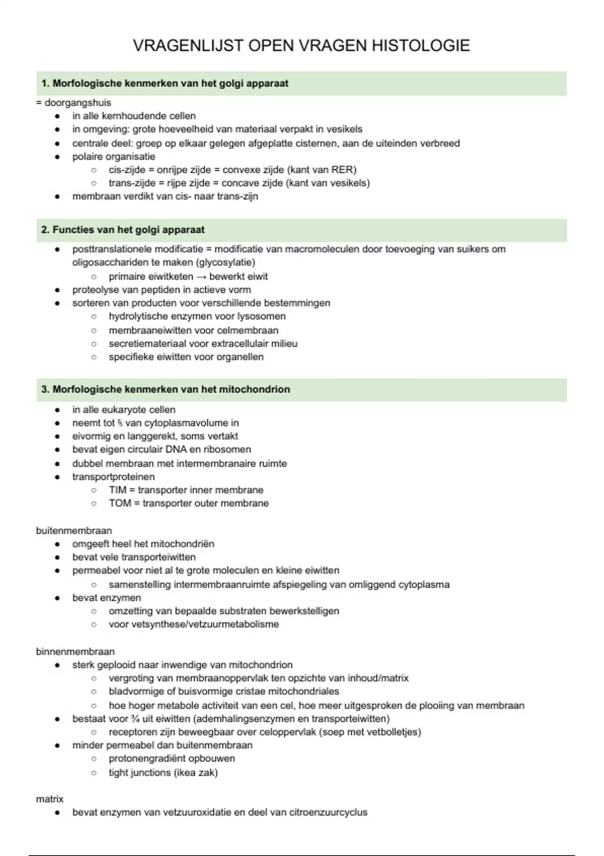 VRAGENLIJST OPEN VRAGEN HISTOLOGIE