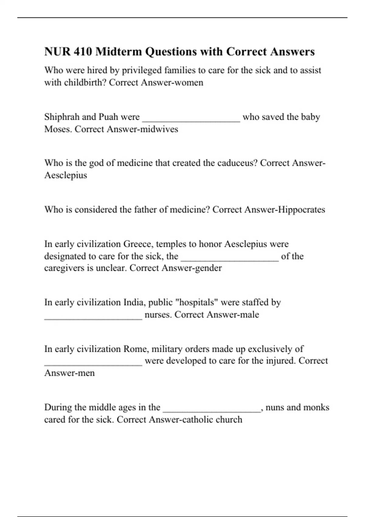 Who is considered the father of medicine? Correct Answer-Hippocrates