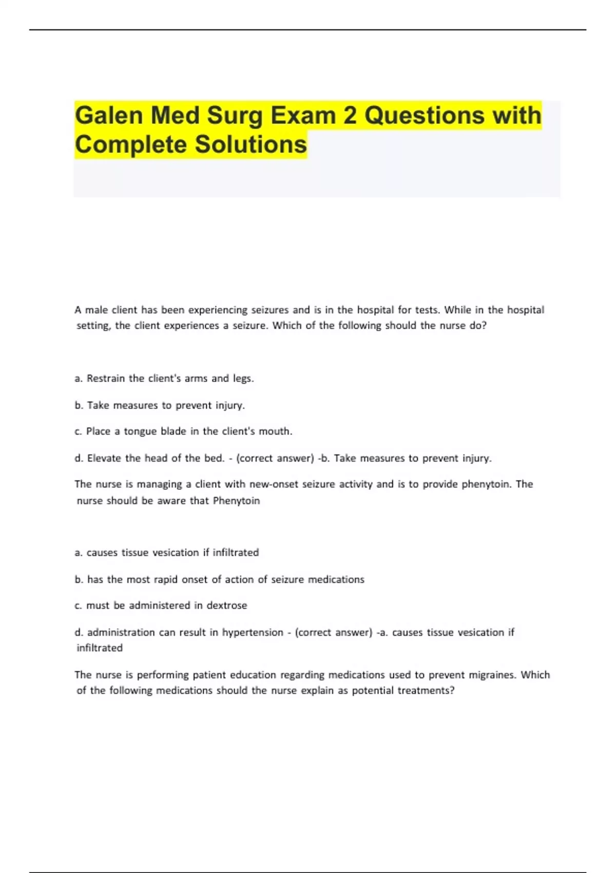 Galen Med Surg Exam 2 Questions with Complete Solutions.