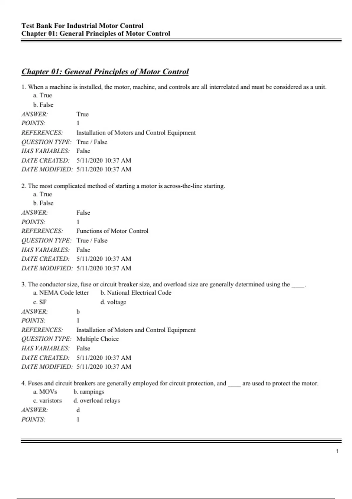 , Test Bank For Industrial Motor Control