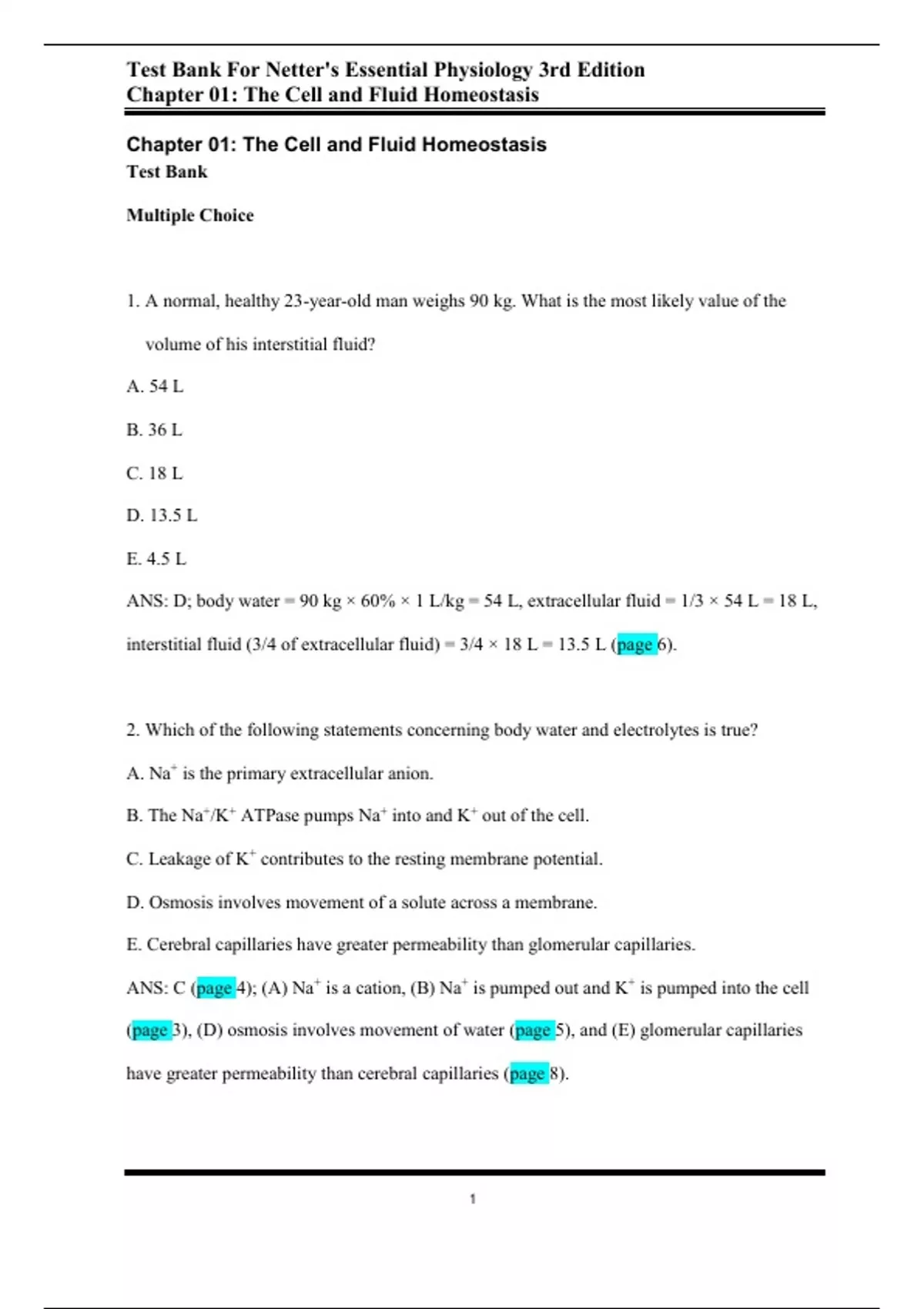 Chapter 01: The Cell and Fluid Homeostasis