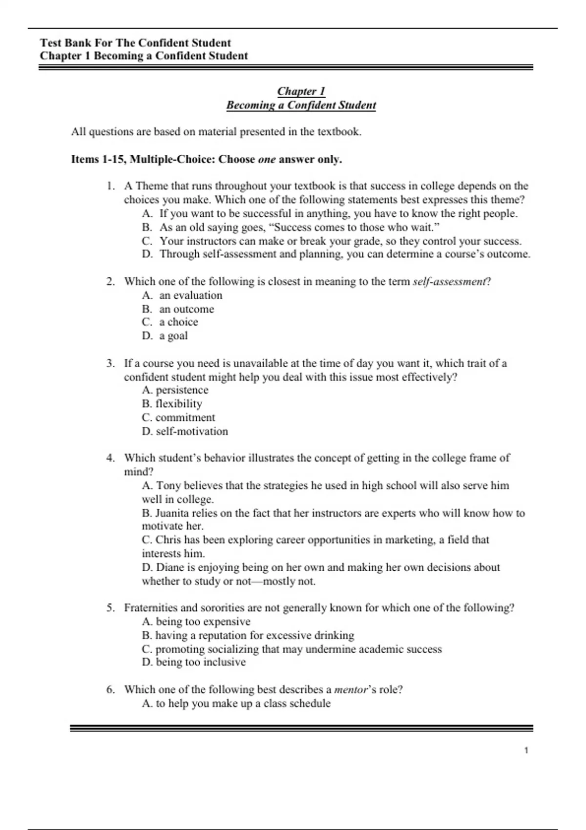 , Test Bank For The Confident Student