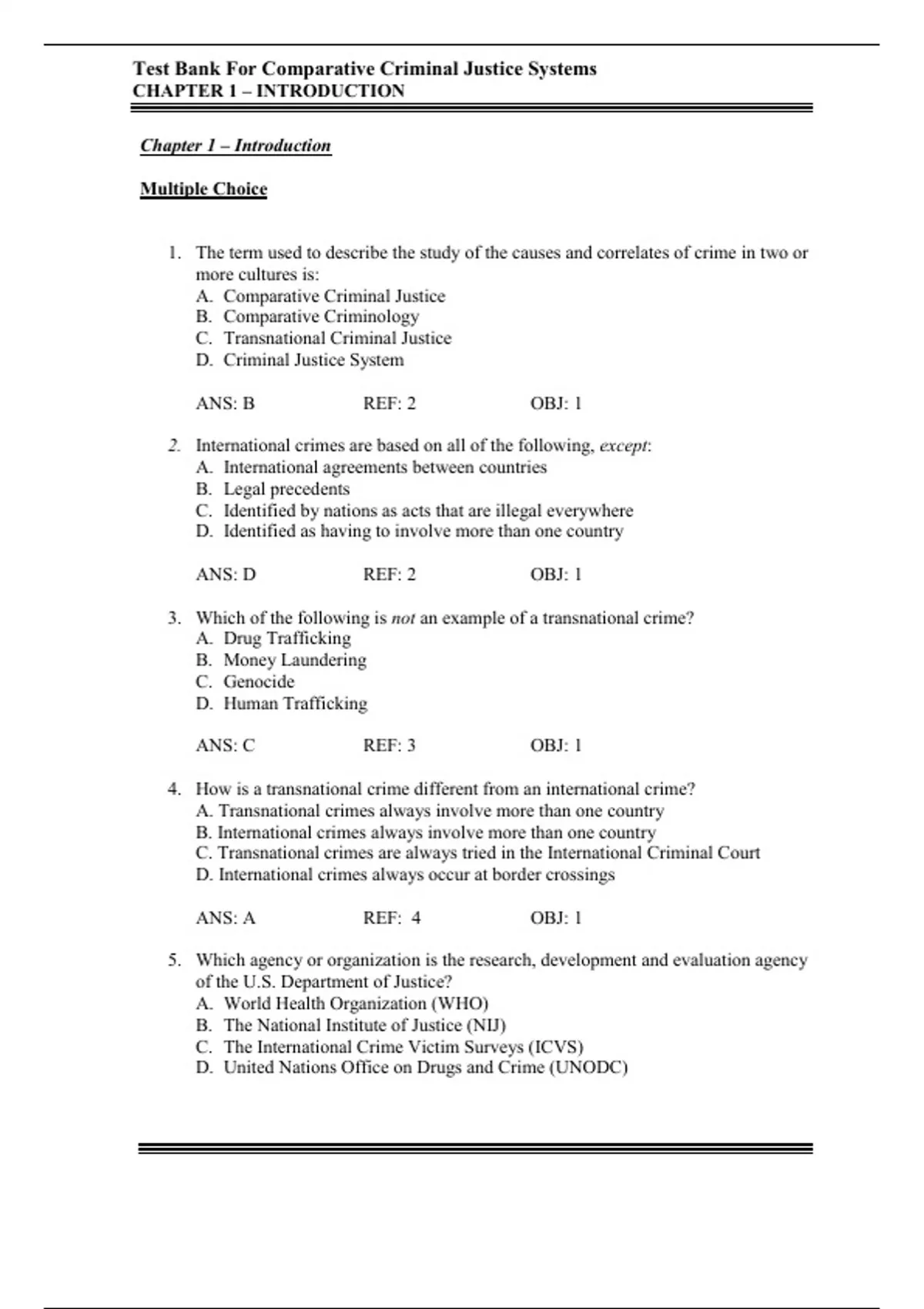 , Test Bank For Comparative Criminal Justice Systems