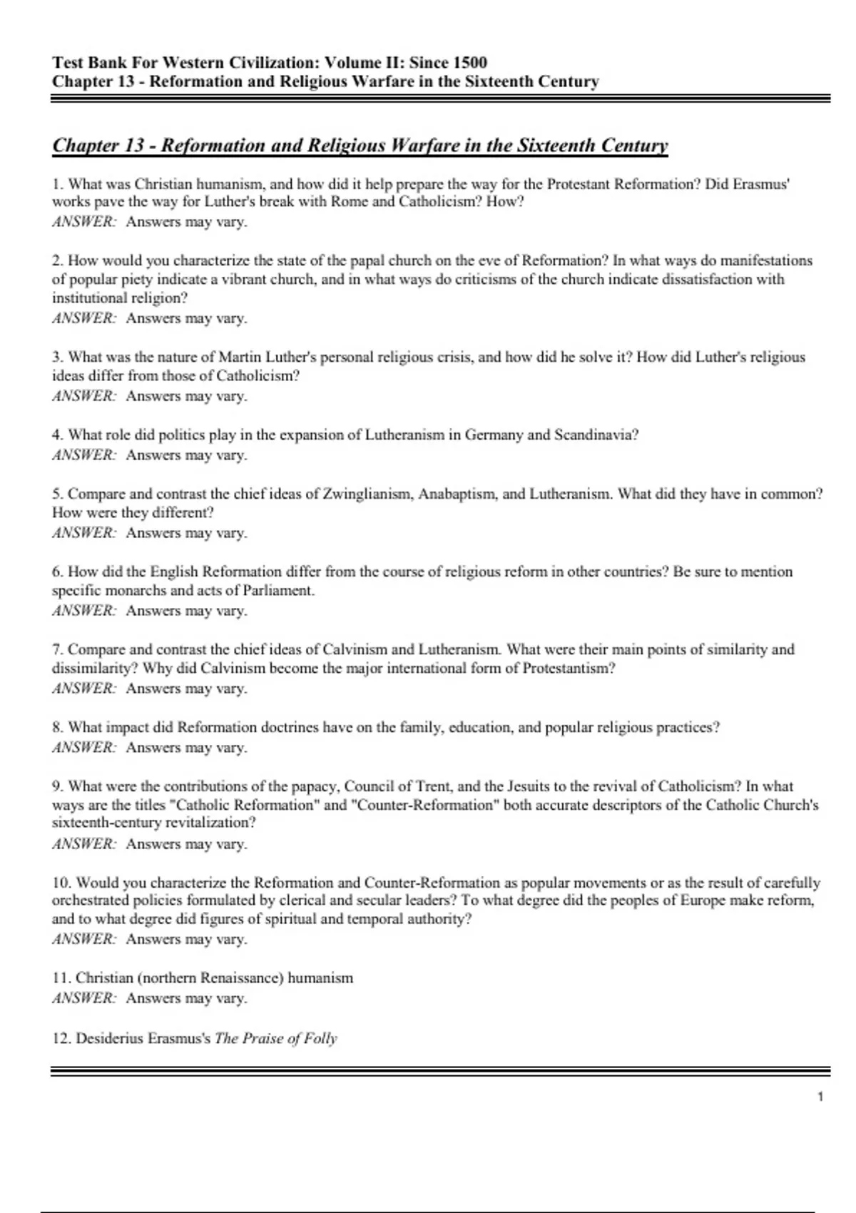 , Test Bank For Western Civilization: Volume II: Since 1500