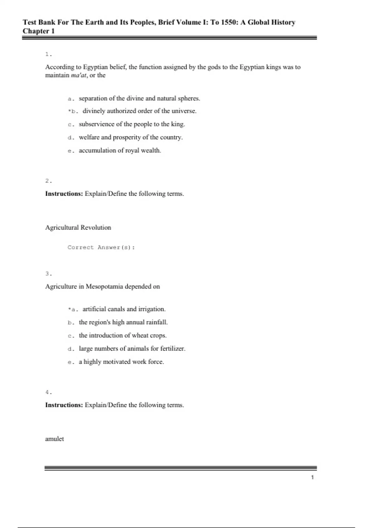, Test Bank For The Earth and Its Peoples, Brief Volume I: To 1550: A Global History