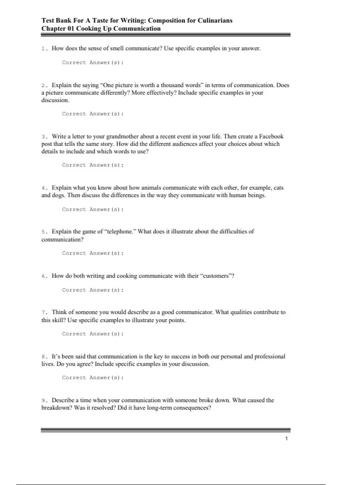 , Test Bank For A Taste for Writing: Composition for Culinarians