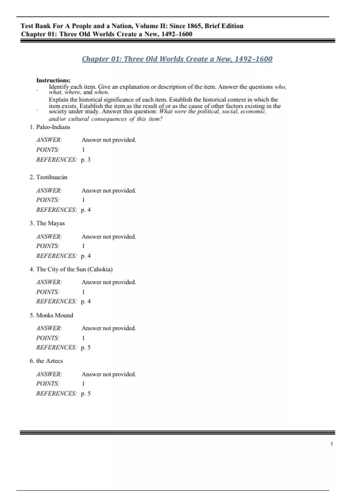 , Test Bank For A People and a Nation, Volume II: Since 1865, Brief Edition