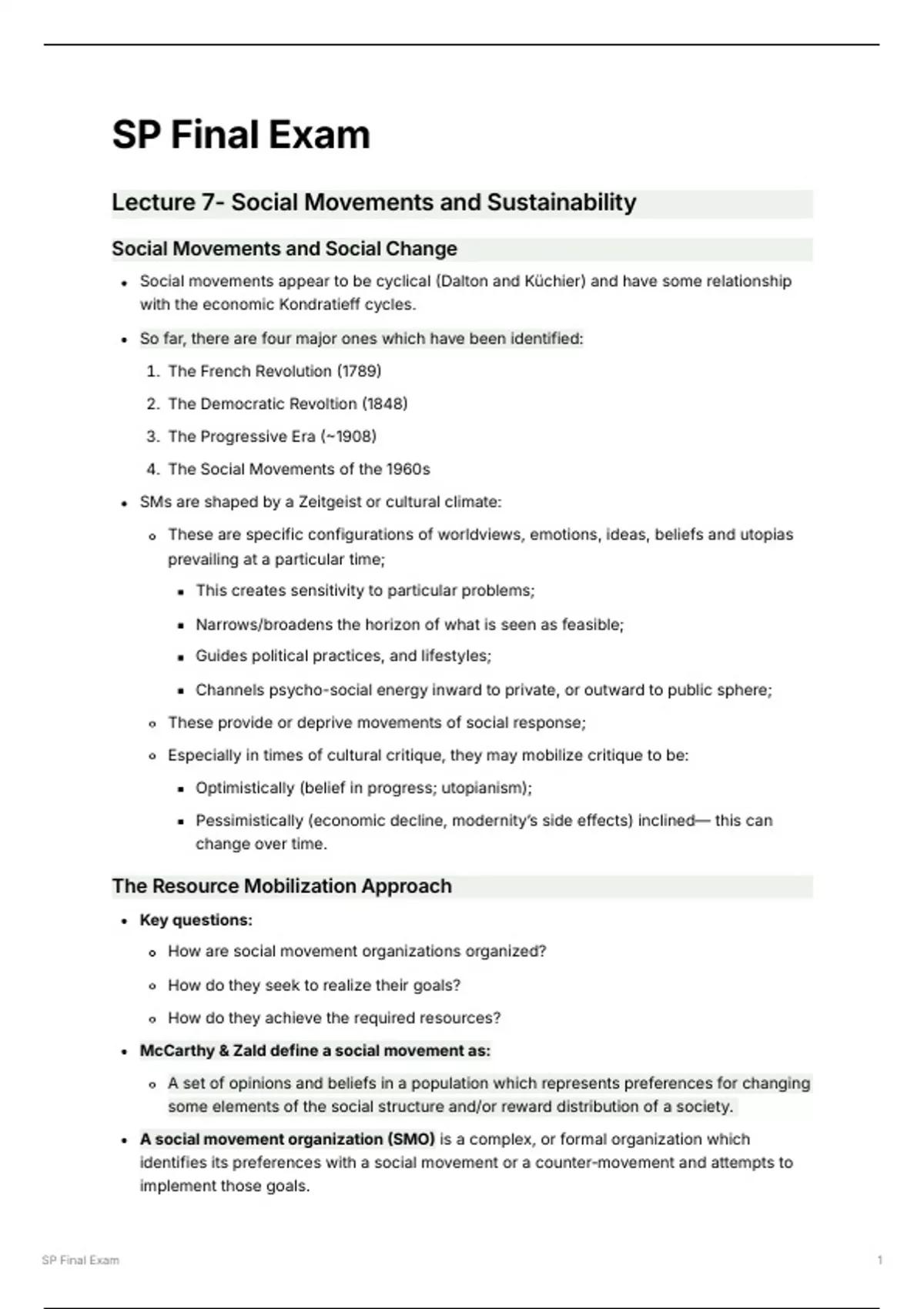 Lecture 7- Social Movements and Sustainability