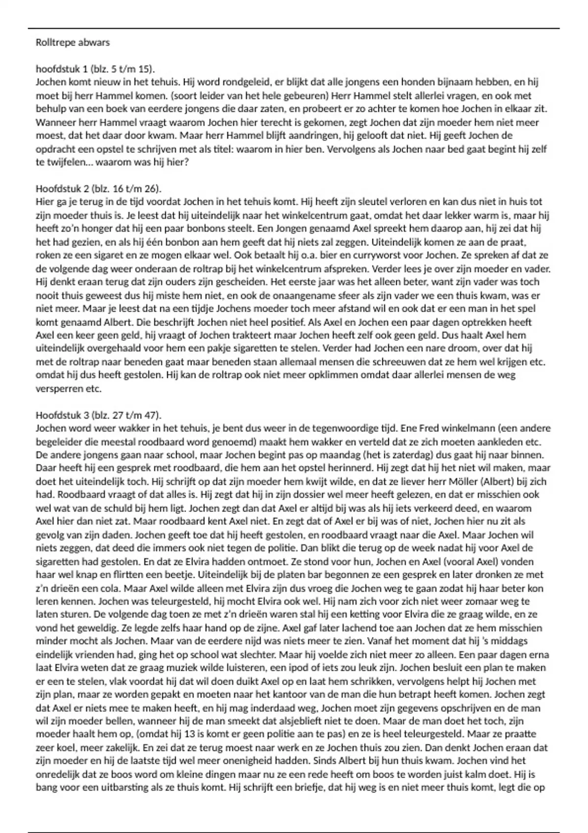 opdracht een opstel te schrijven met als titel: waarom in hier ben. Vervolgens als Jochen naar bed gaat begint hij zelf