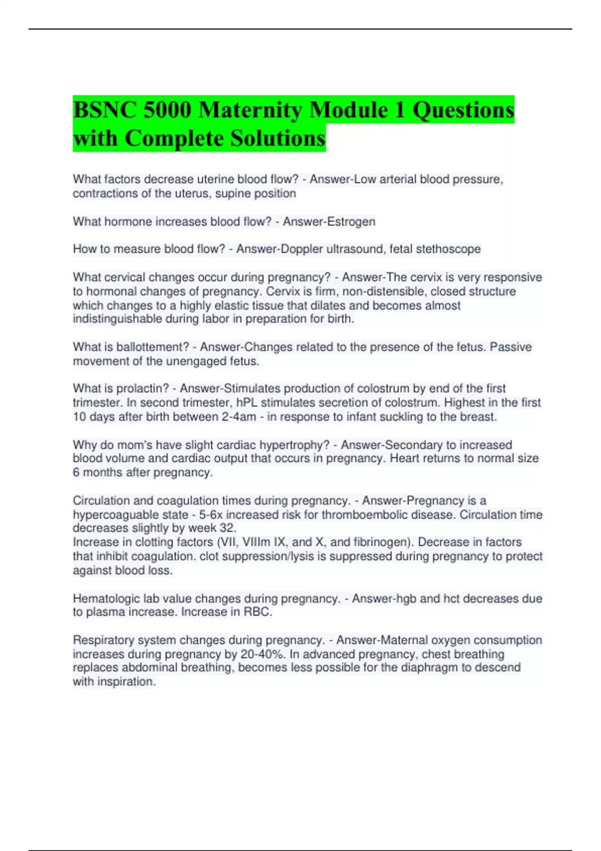 Circulation and coagulation times during pregnancy. - Answer-Pregnancy is a