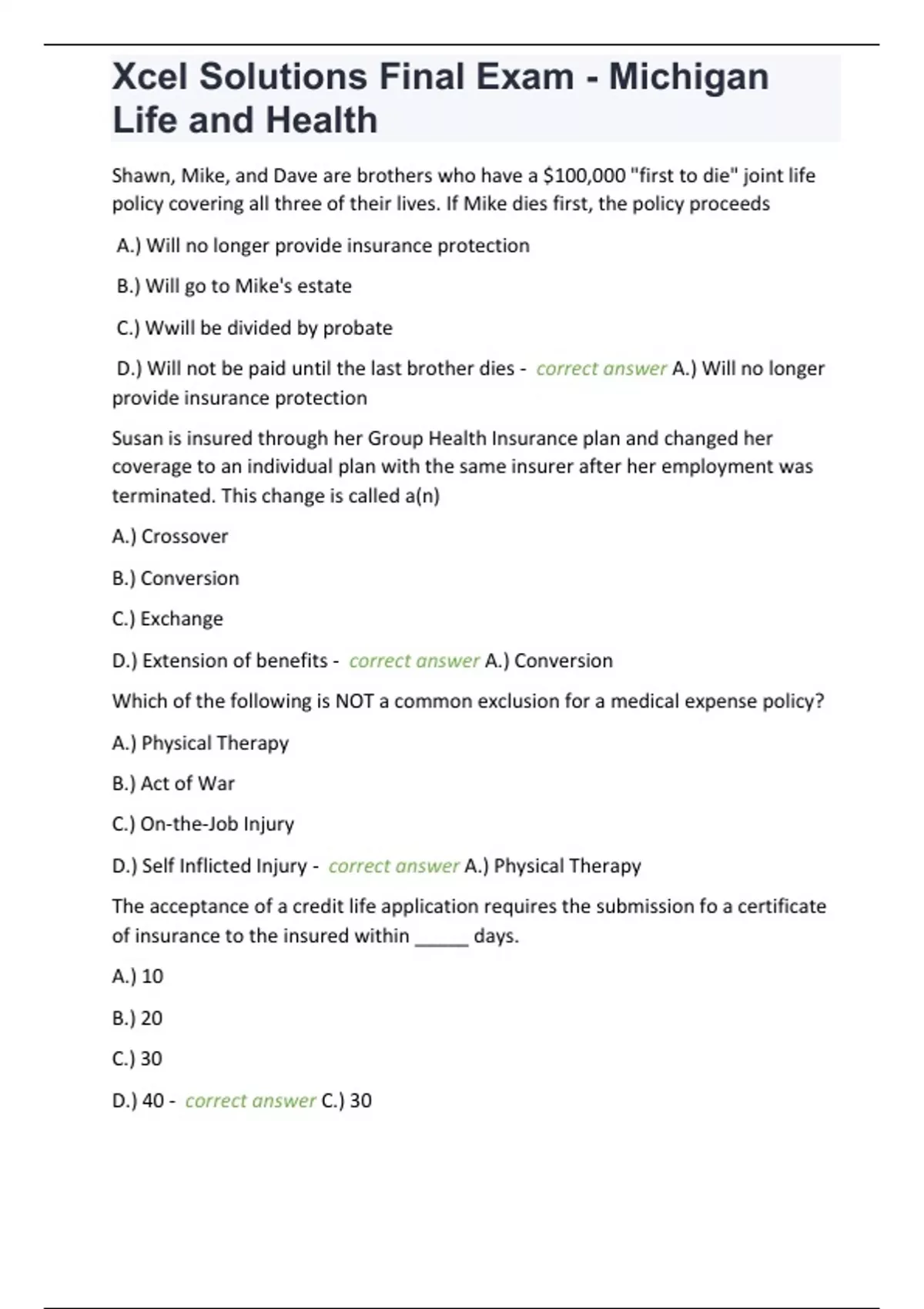 Xcel Solutions Final Exam - Michigan Life and Health-100 quiz and answers/Xcel Solutions Final Exam - Michigan Life and Health-100 quiz and answers/Xcel Solutions Final Exam - Michigan Life and Health-100 quiz and answers