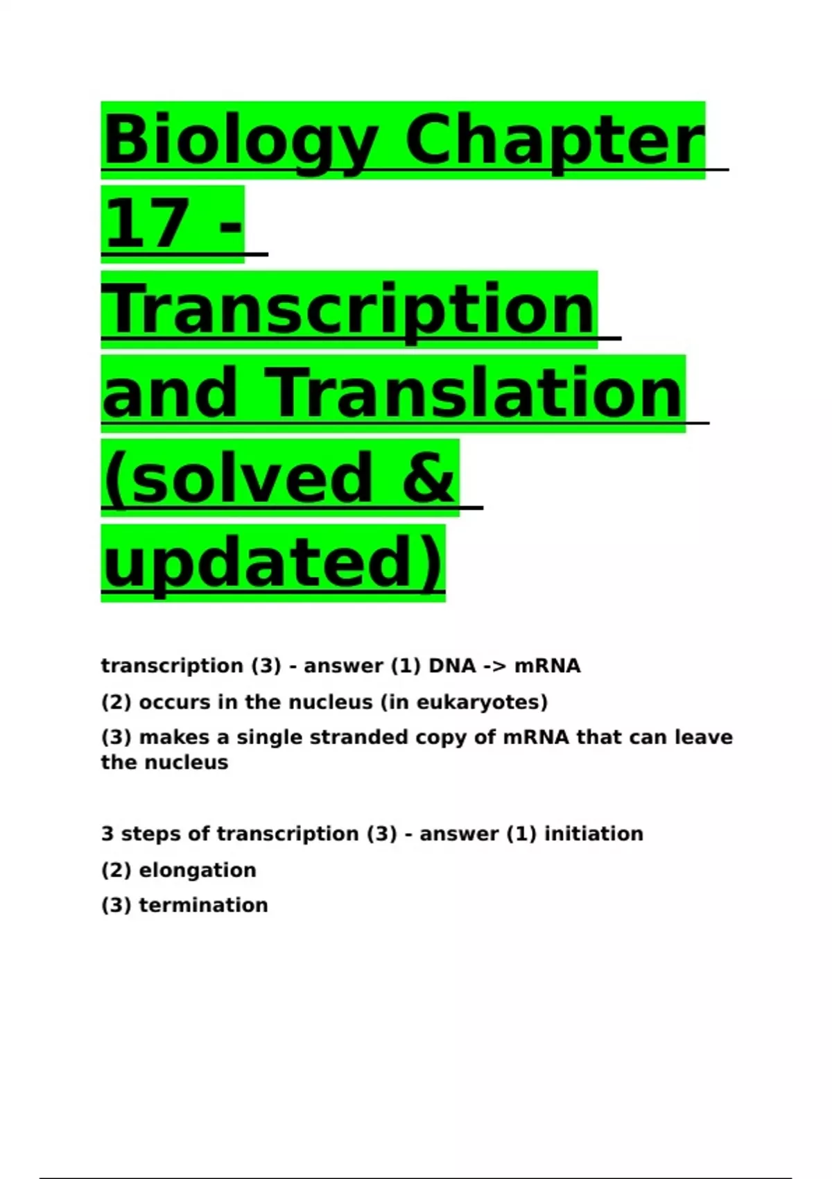 Biology Chapter 17 - Transcription and Translation (solved & updated).