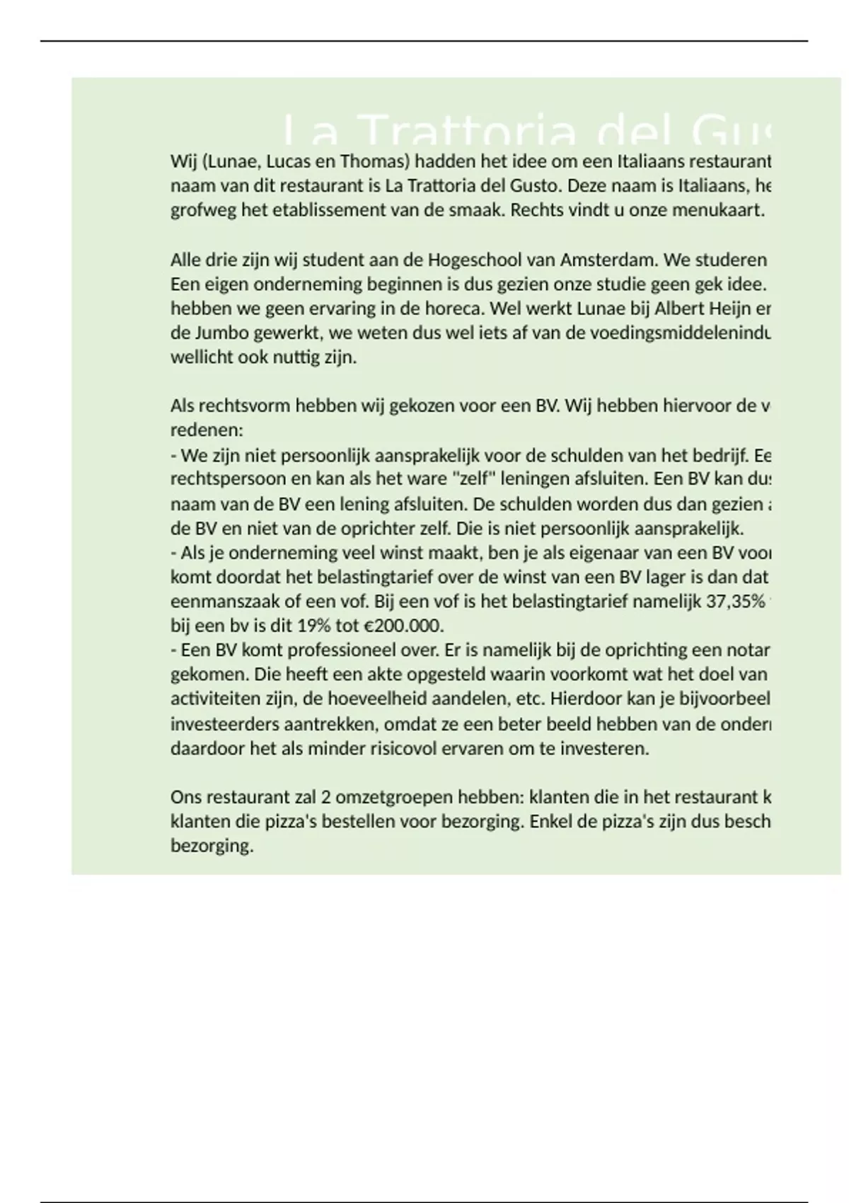 Wij (Lunae, Lucas en Thomas) hadden het idee om een Italiaans restaurant te starten