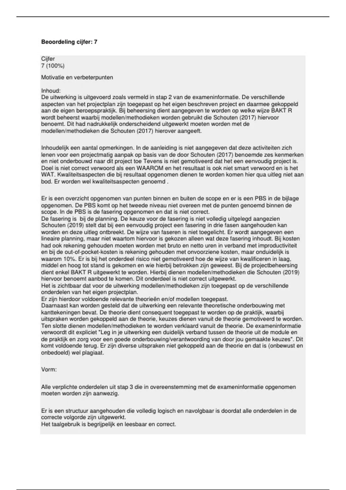 aspecten van het projectplan zijn toegepast op het eigen beschreven project en daarmee gekoppeld