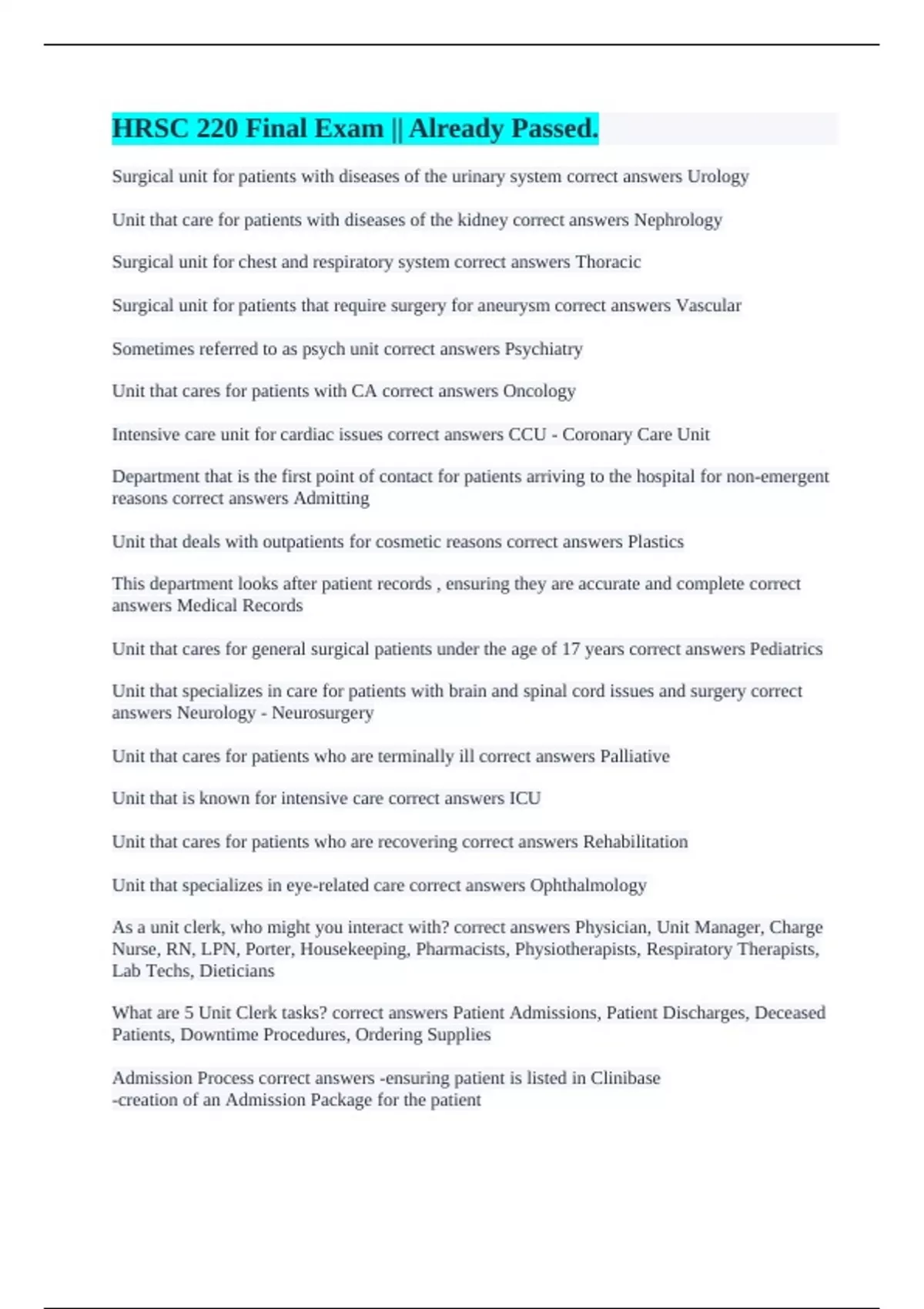 HRSC 220 Final Exam || Already Passed.