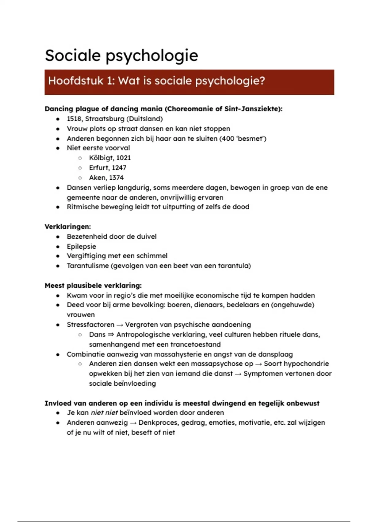 ○ Anderen zien dansen wekt een massapsychose op → Soort hypochondrie
