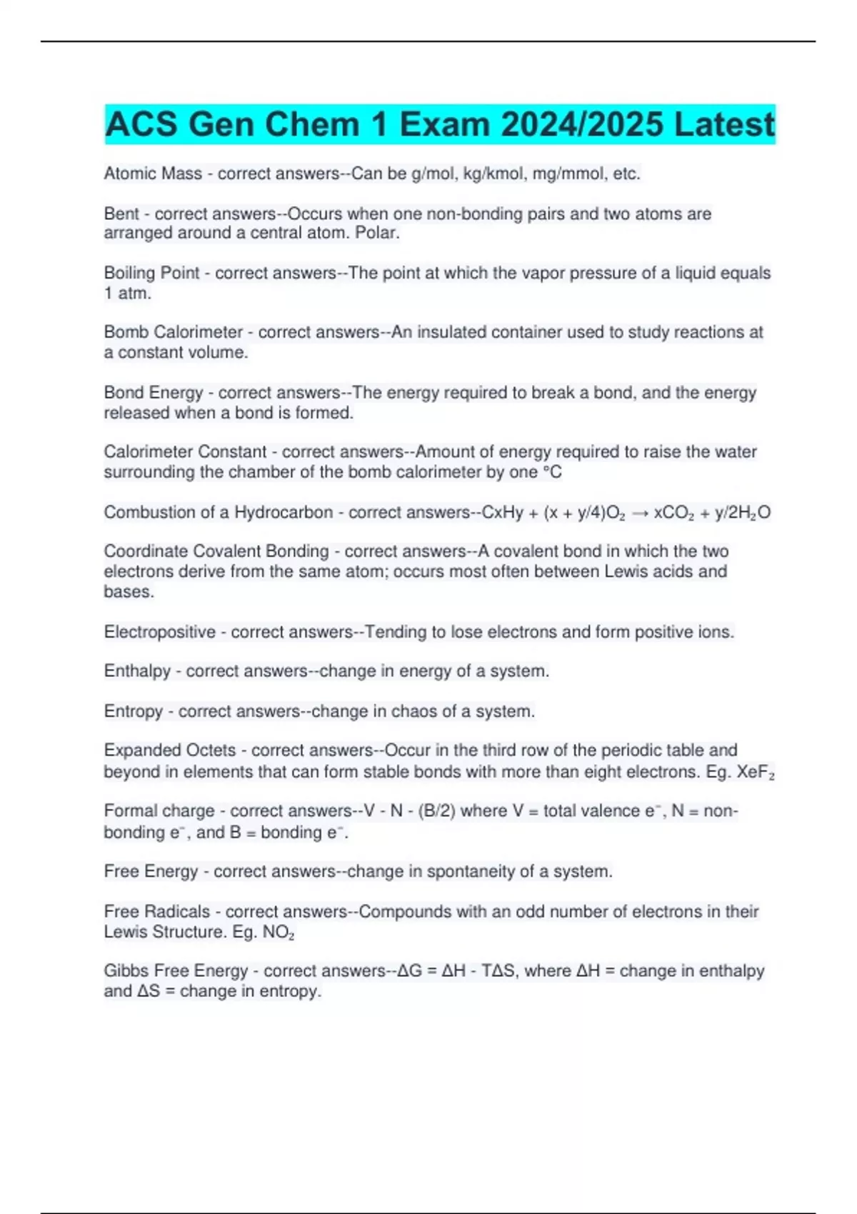 Free Radicals - correct answers--Compounds with an odd number of electrons in their