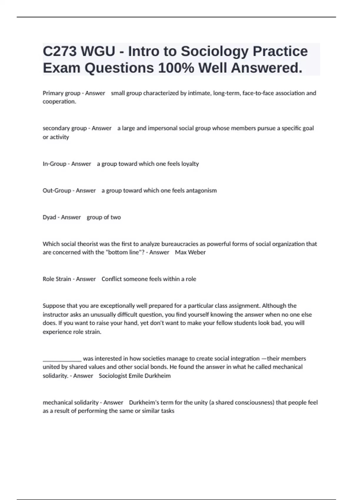 mechanical solidarity - Answer Durkheim's term for the unity (a shared consciousness) that people feel