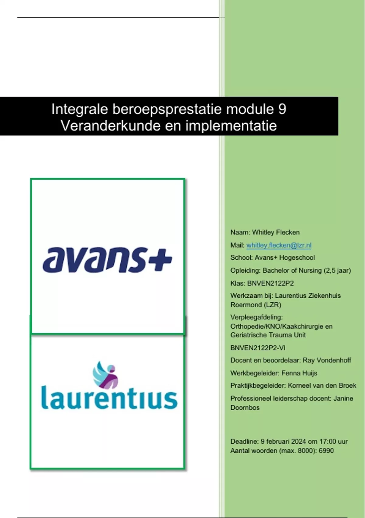 Ter afsluiting van module 9 Veranderkunde en implementatie ligt voor u mijn integrale