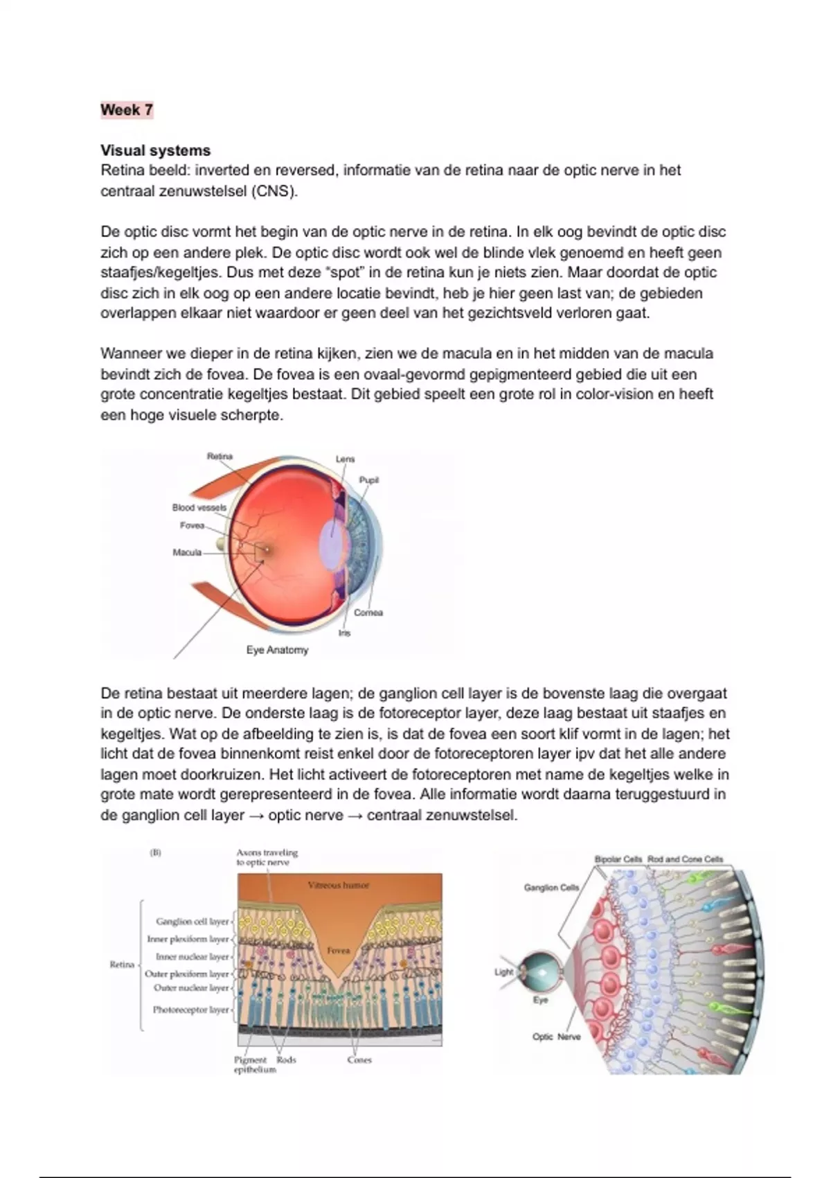 staafjes/kegeltjes. Dus met deze “spot” in de retina kun je niets zien. Maar doordat de optic