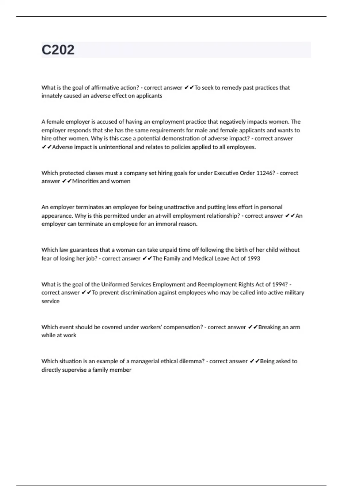 What is the goal of affirmative action? - correct answer ✔✔To seek to remedy past practices that