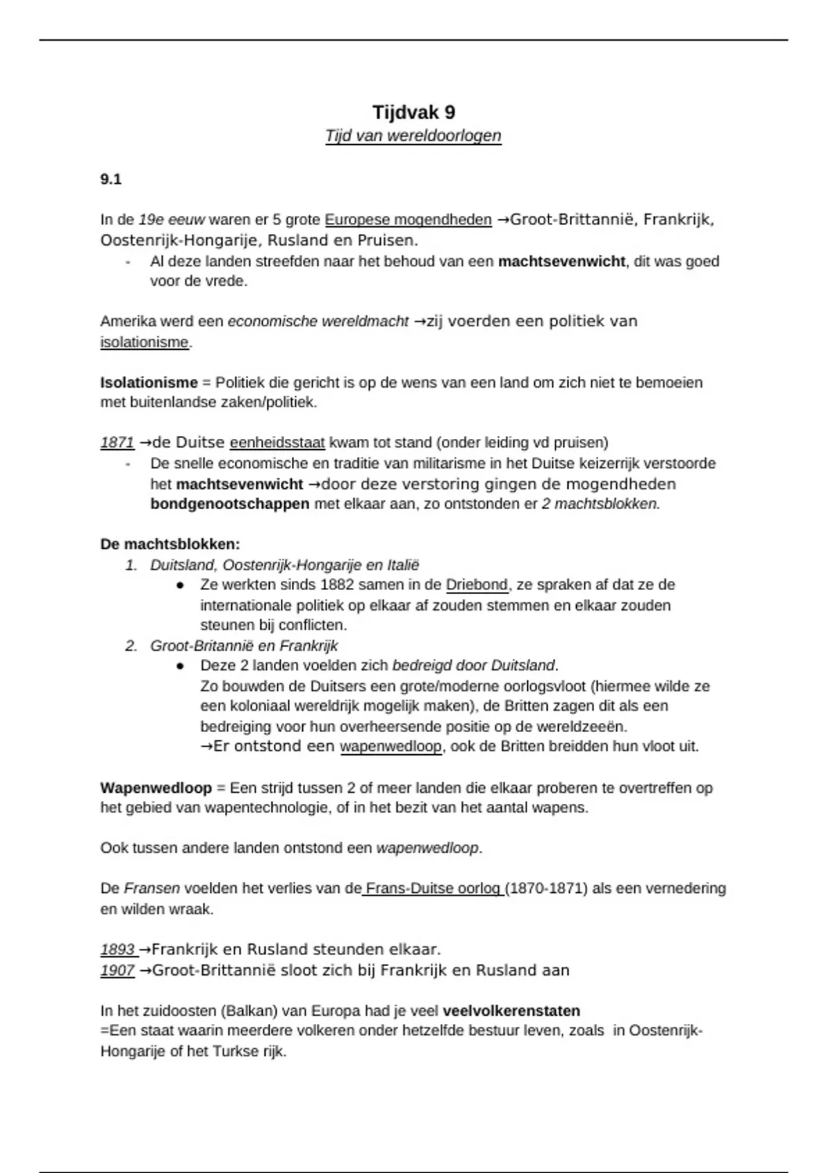 Wereldoorlog = een oorlog tussen veel staten die op mondiale schaal wordt gevoerd.
