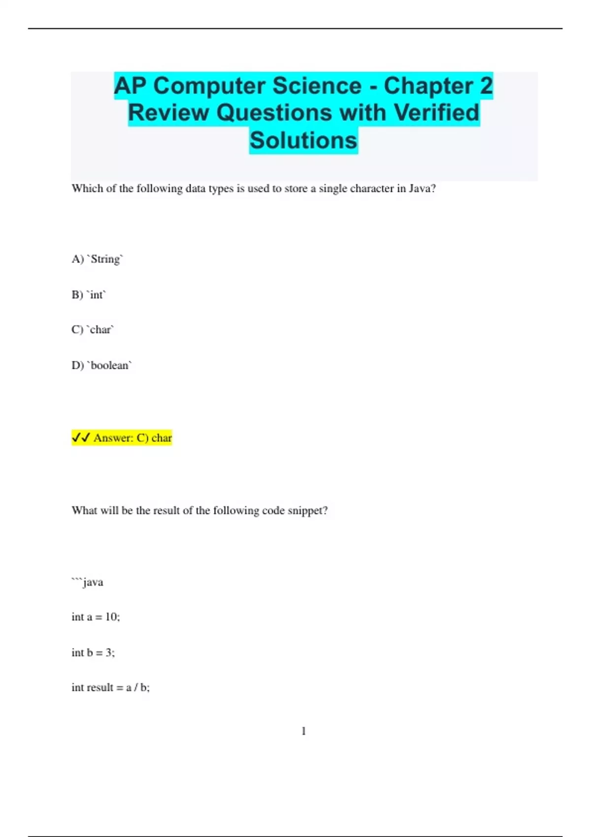 ✔✔ Answer: C) char