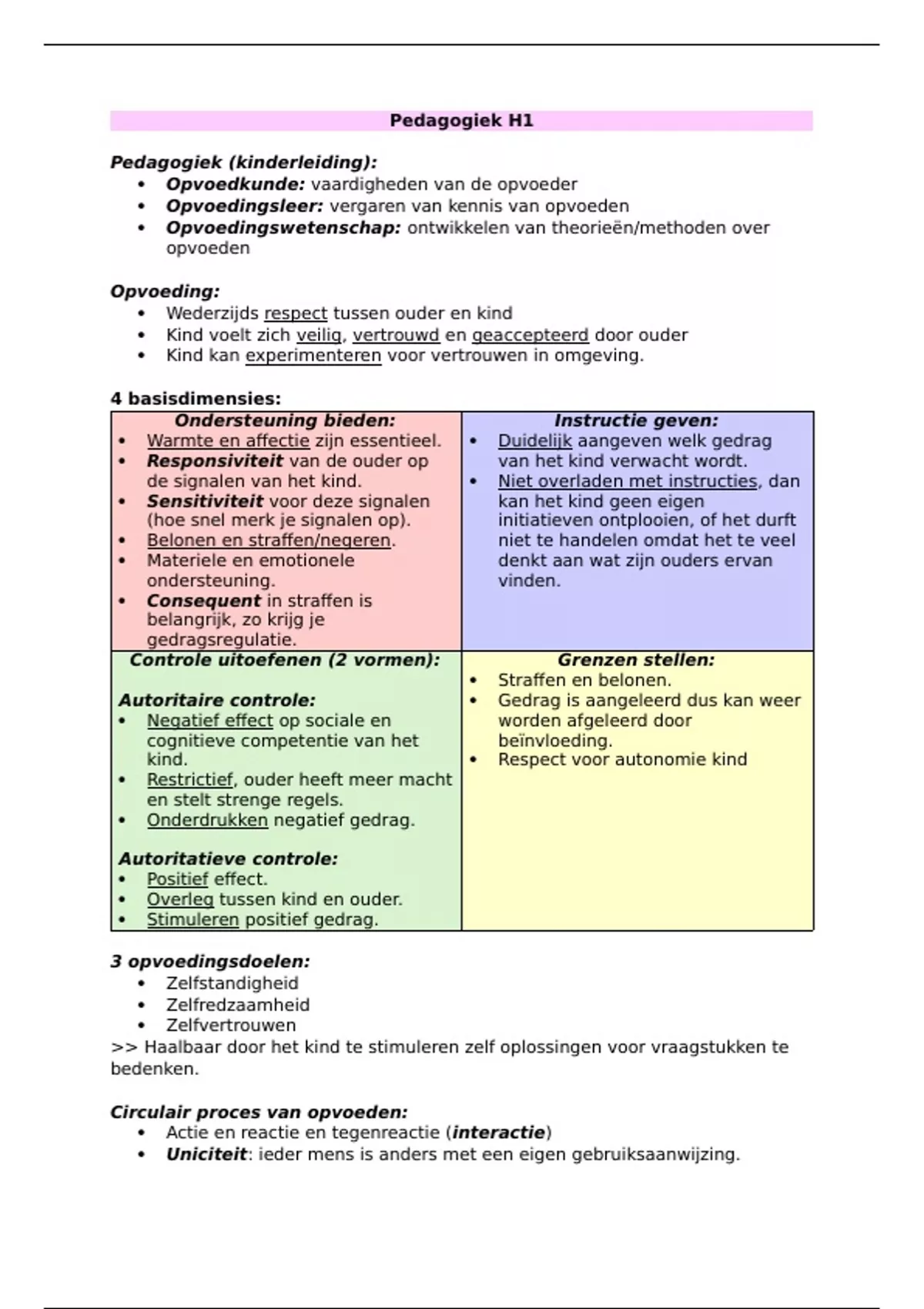 Samenvatting Pedagogiek periode 3 leerjaar 1 Social Work fontys