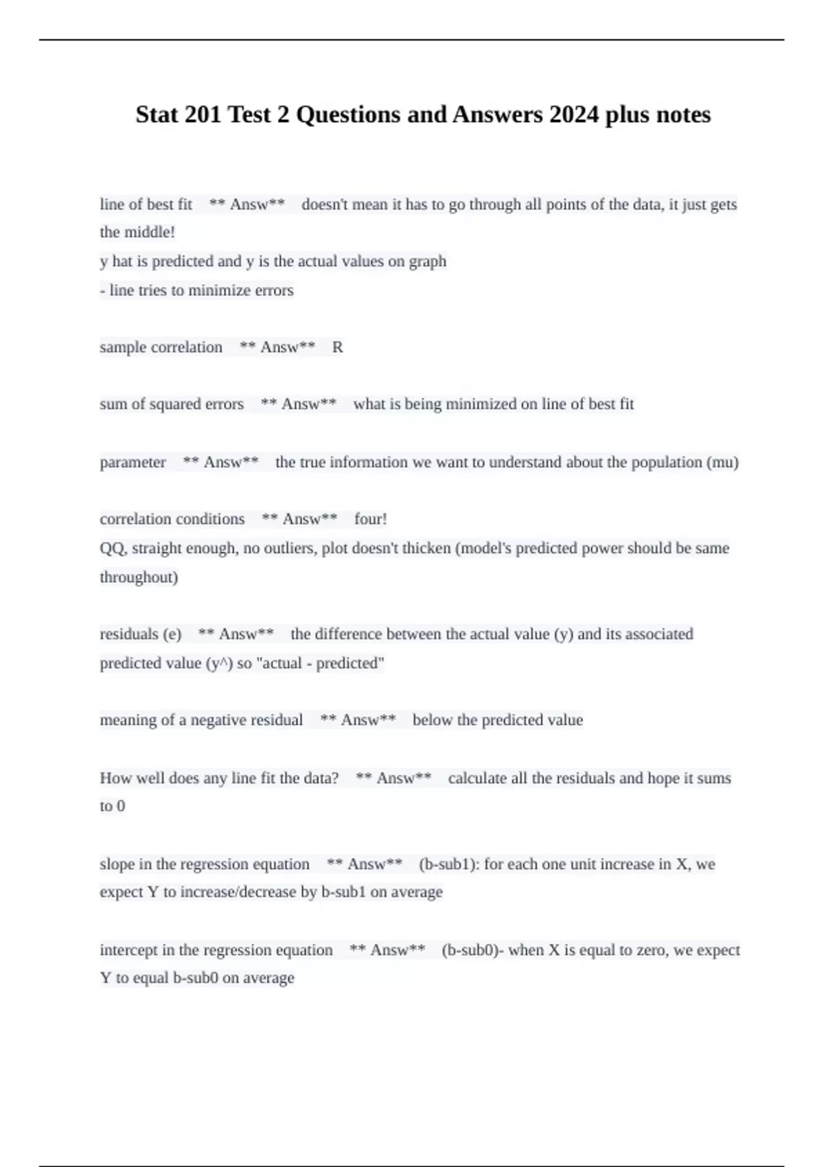 sum of squared errors ** Answ** what is being minimized on line of best fit