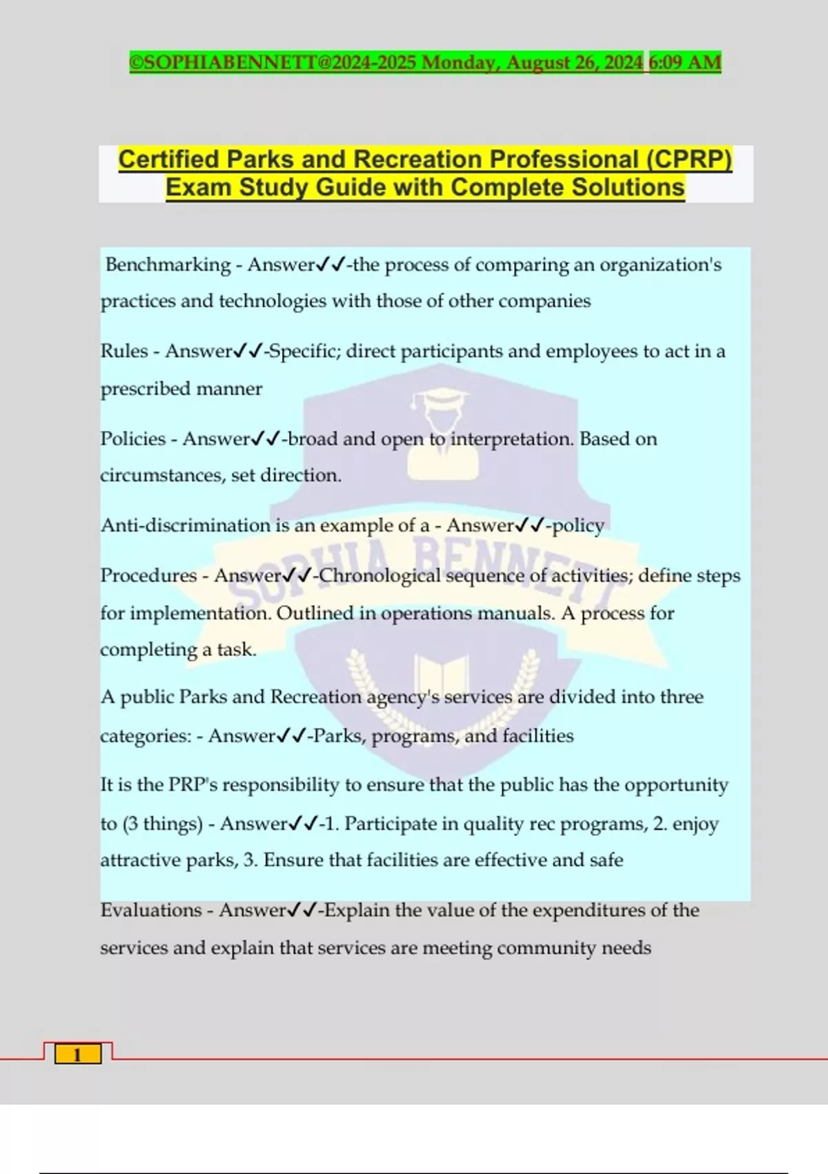 Parks and Recreation? - Answer✔️✔️-Minimum level: Maintain area so it is