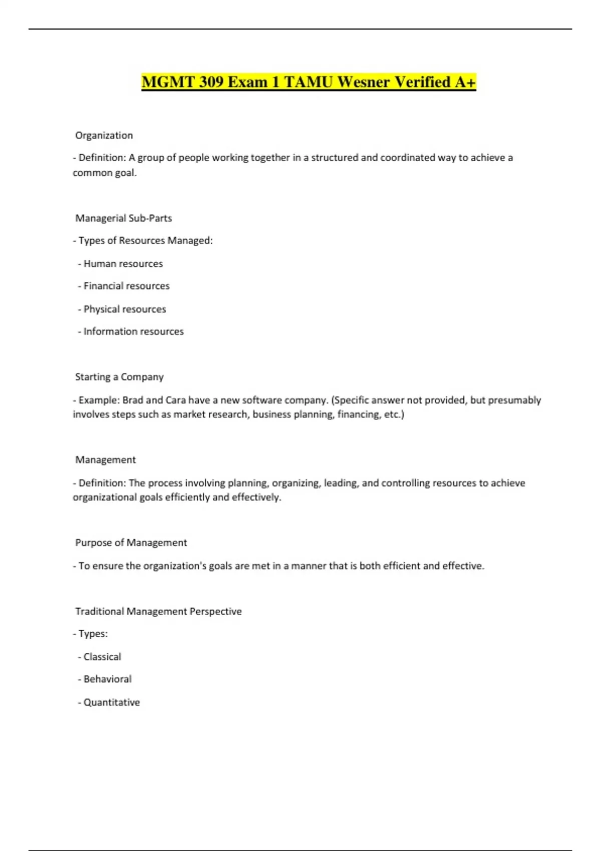 Traditional Management Perspective