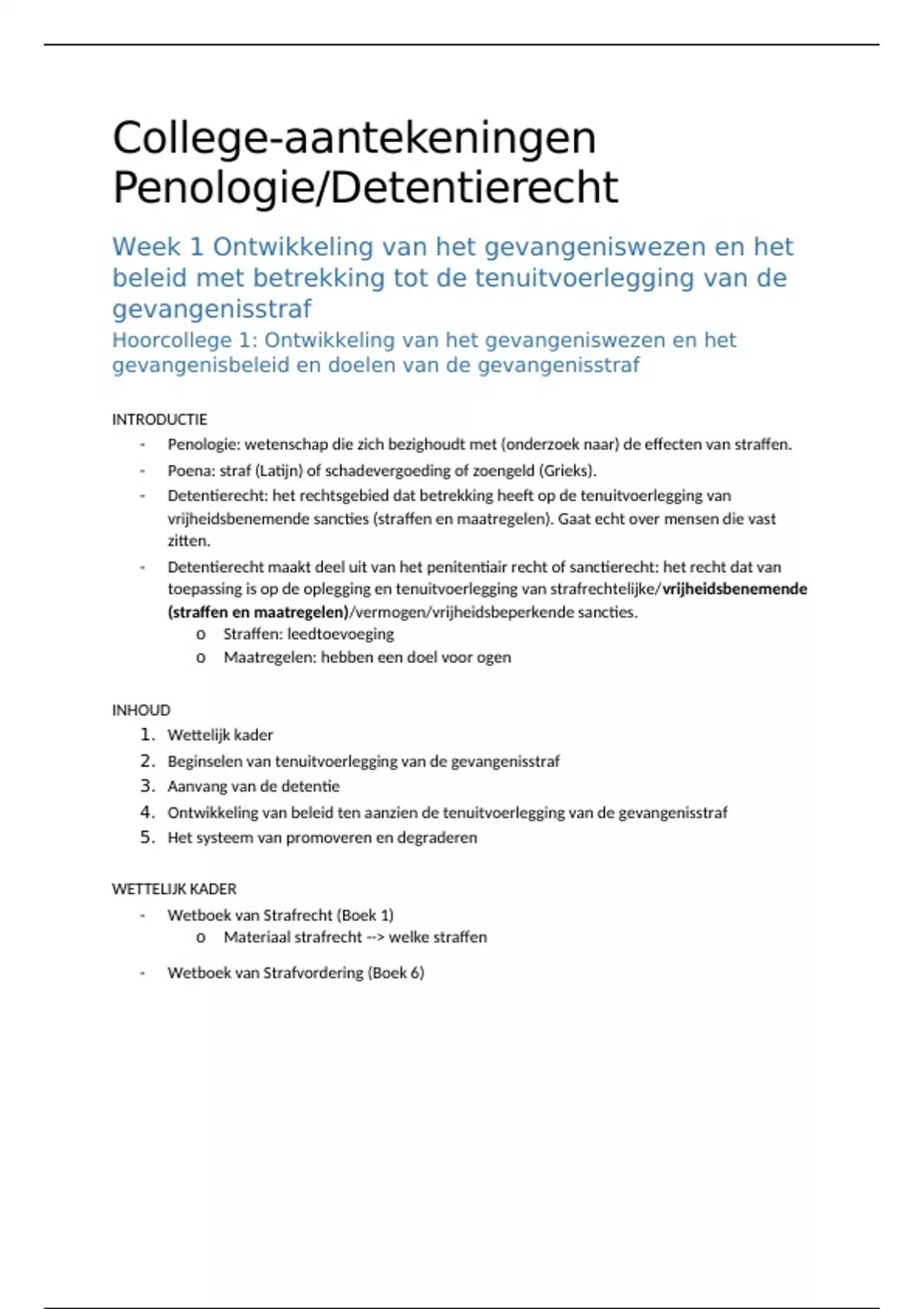 Hoorcollege 1: Ontwikkeling van het gevangeniswezen en het