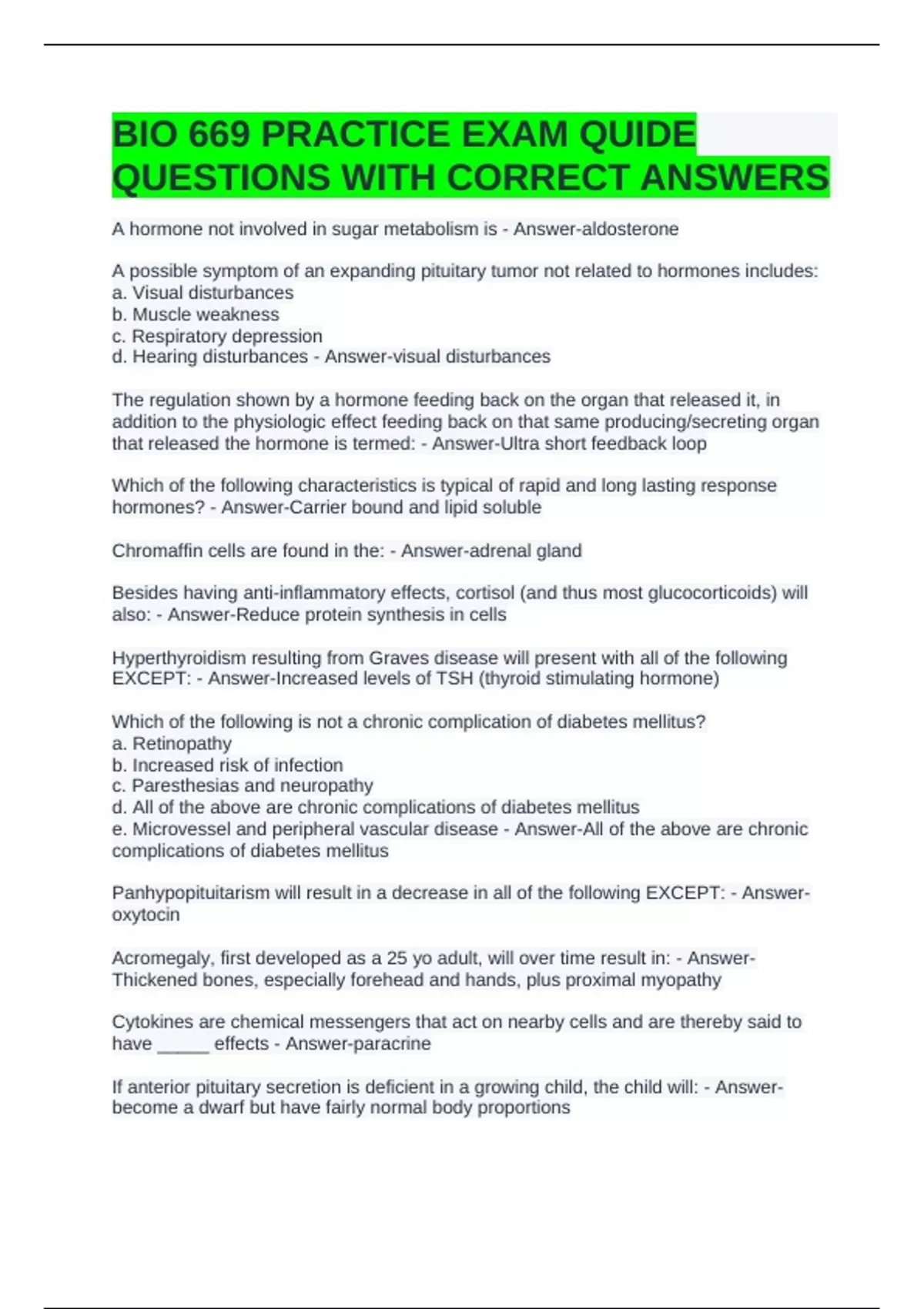 BIO 669 PRACTICE EXAM QUIDE