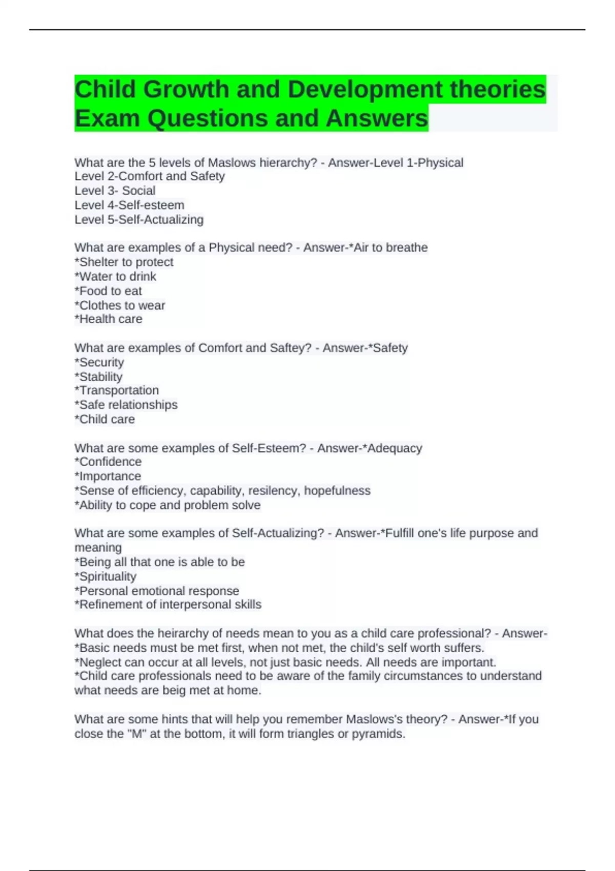 What does the heirarchy of needs mean to you as a child care professional? - Answer-