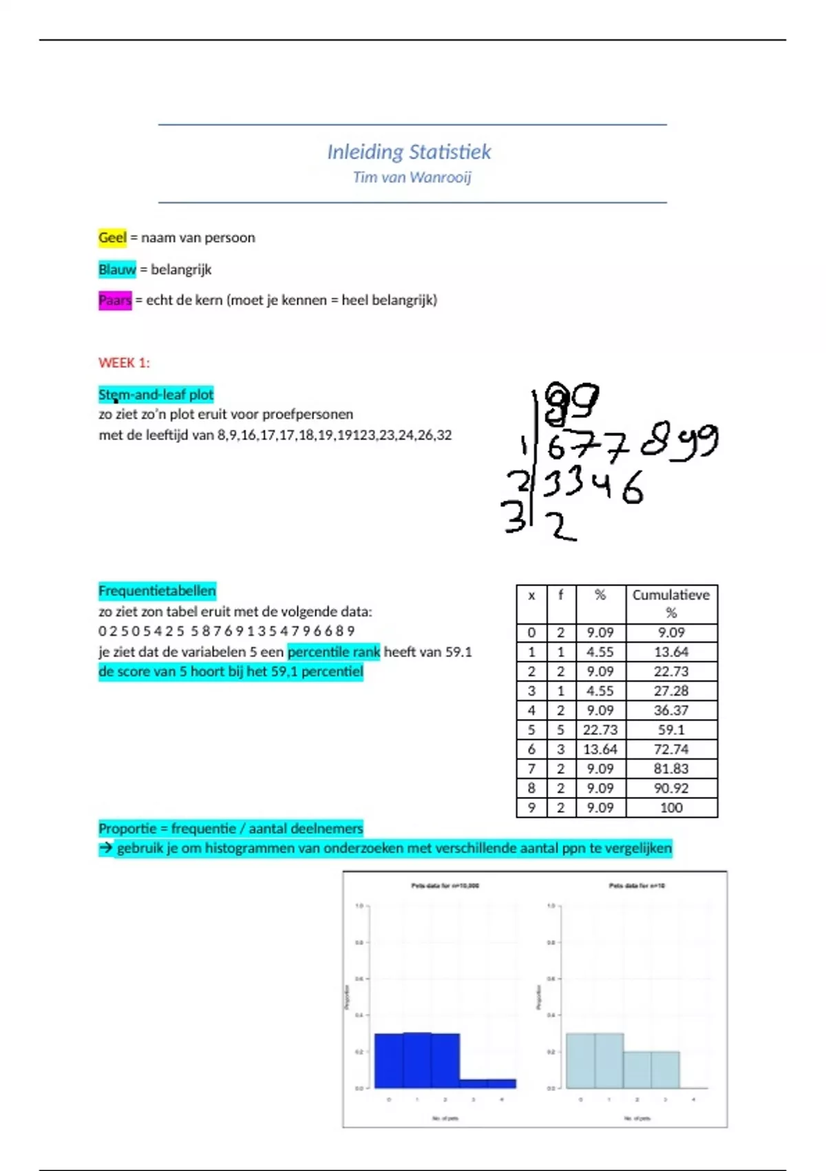 Proportie = frequentie / aantal deelnemers