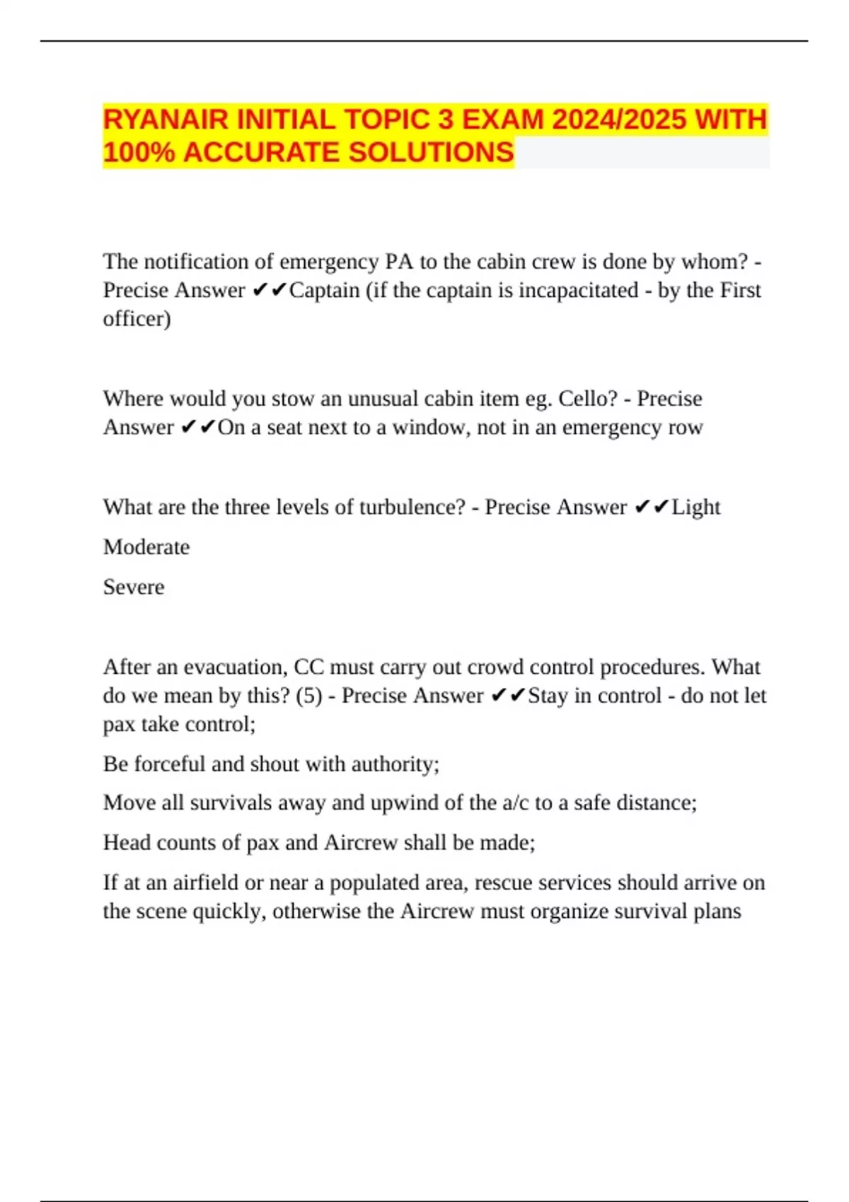 What are the three levels of turbulence? - Precise Answer ✔✔Light