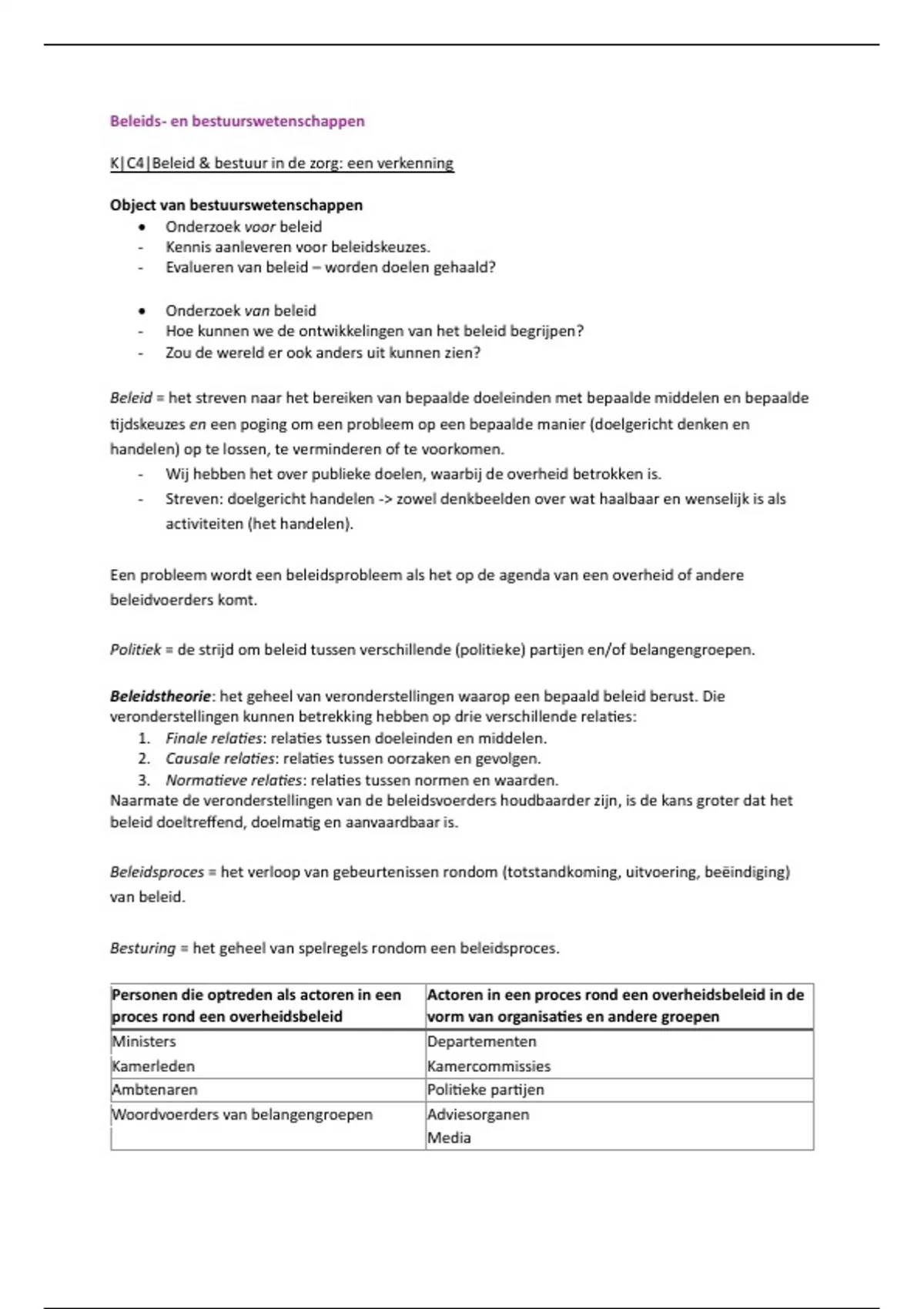 K|C4|Beleid & bestuur in de zorg: een verkenning
