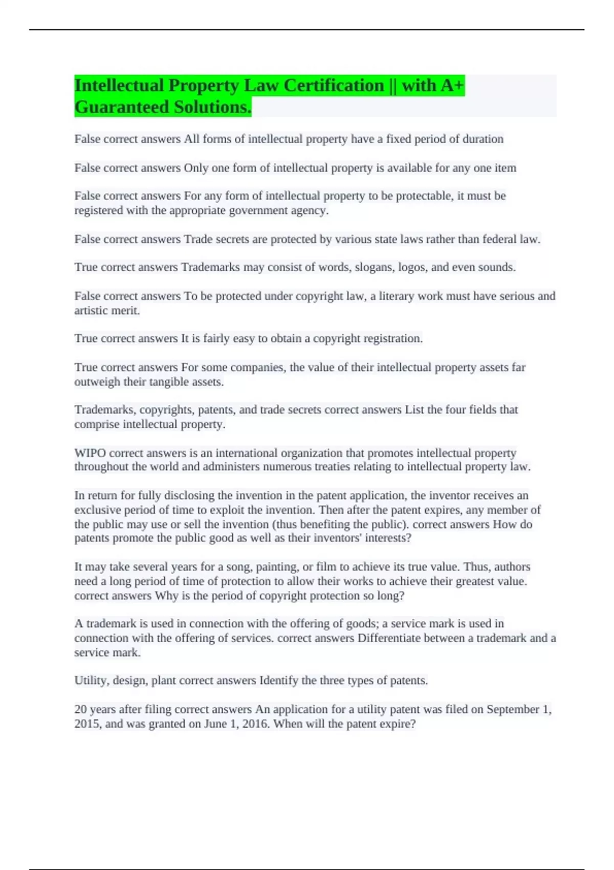 Intellectual Property Law Certification || with A+ Guaranteed Solutions.